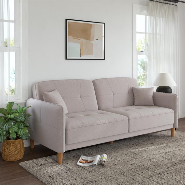 Mainstays Claremonte 78″ Tufted 3 Seater Sofa Couch with Throw Cushions, Light Gray Linen