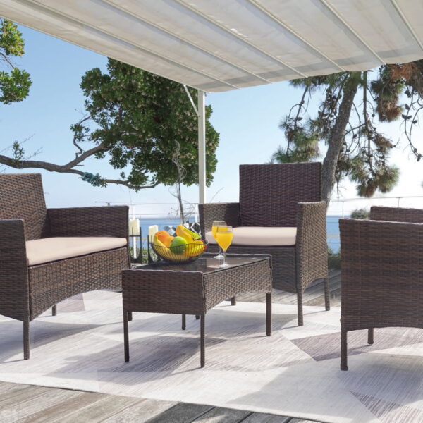 • Vineego 4 Pieces Outdoor Patio Furniture Sets Conversation Sets Rattan Chair Wicker Sets with Cushioned Tempered Glass
