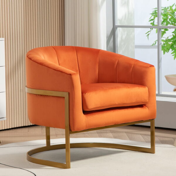 US Pride Furniture Modern Accent Armchair Luxury Gold Frame and Multi-colored Velvet Material Infuse Elegant Flair Red Orange
