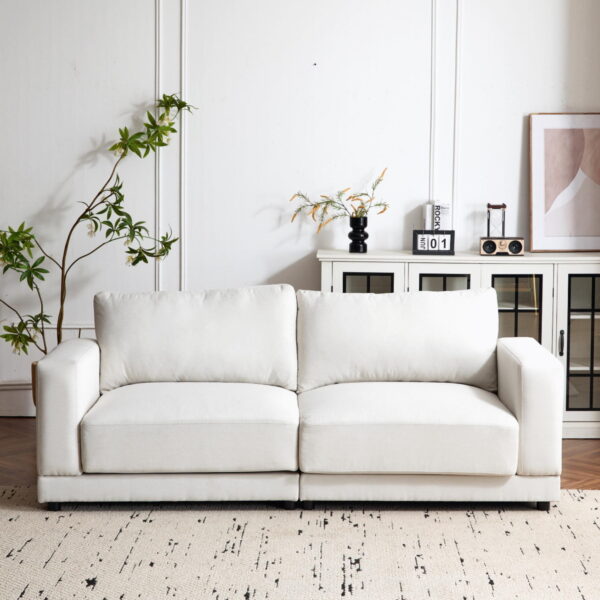 Modern Sofa Couches for Living Room,Mid-Century Upholstered Sofa Furniture with Sturdy Wooden Legs for Living Room,Bedroom,White