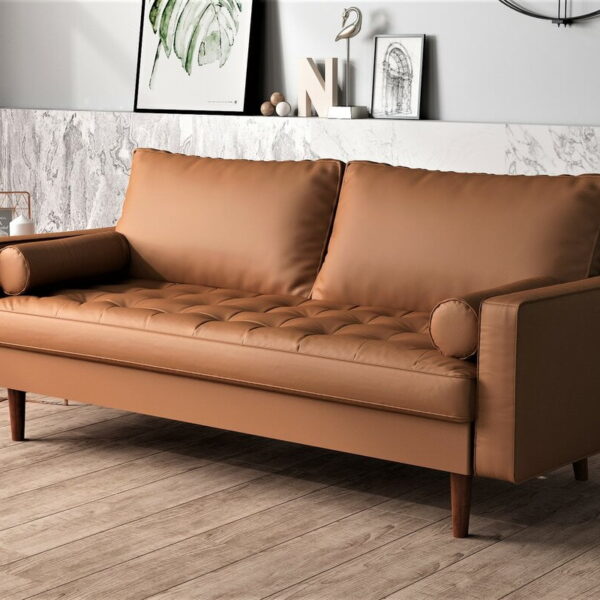 US Pride Furniture Gabler70” Square Arm Wood Frame Mid-Century Sofa, Brown