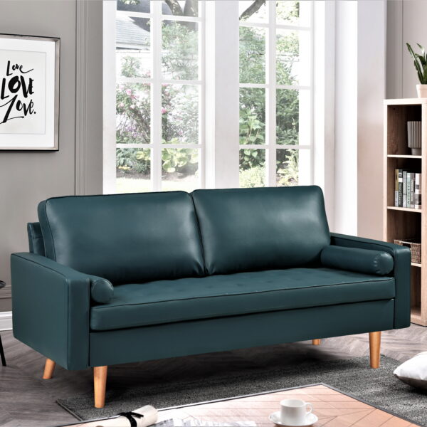 US PRIDE FURNITURE Partone 69.7” Vegan Faux Leather Square Arm Sofa -Dark Ocean Blue