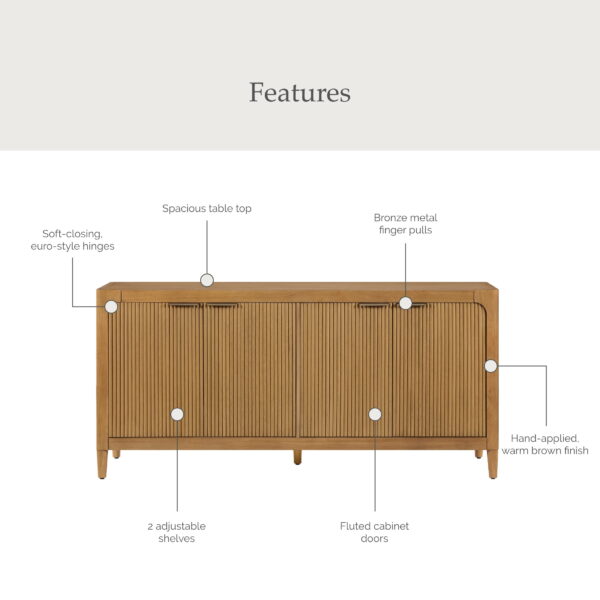 • My Texas House Linden Fluted Buffet Cabinet Sideboard with Adjustable Shelves, Warm Brown