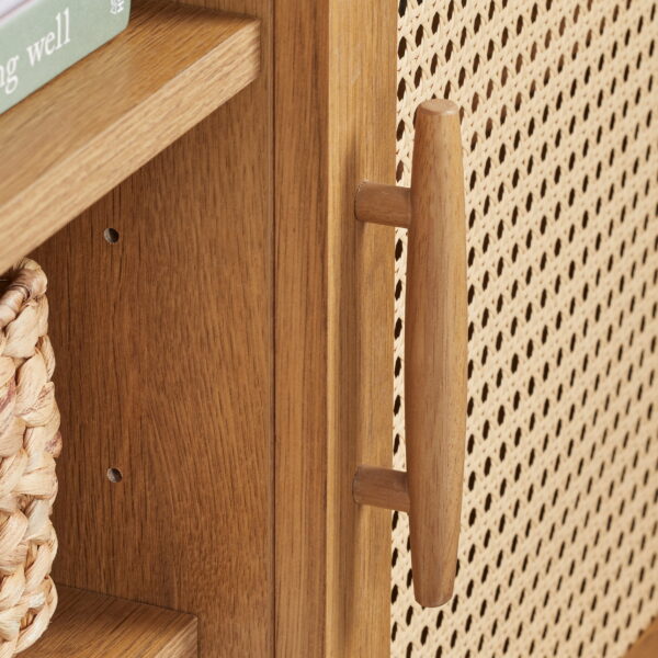 • Better Homes & Gardens Springwood Caning Storage Accent Cabinet, Light Honey Finish