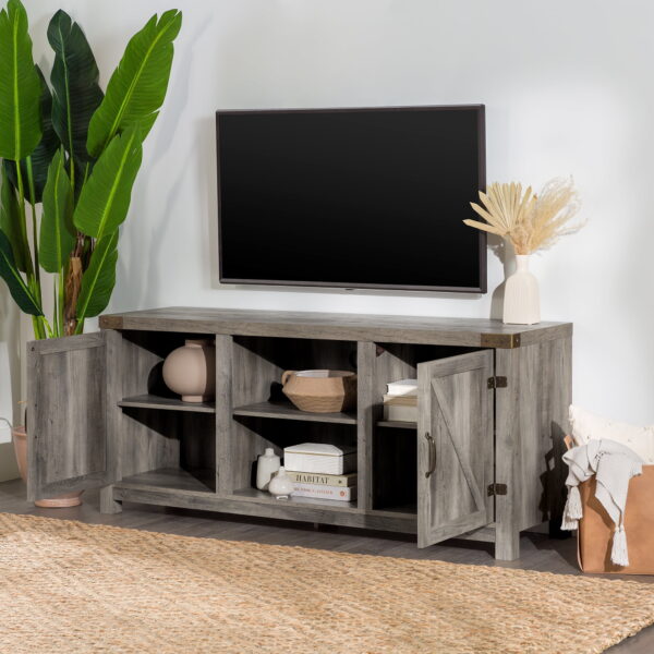 • Walker Edison Modern Farmhouse Barn Door TV Stand for TVs up to 65", Grey Wash
