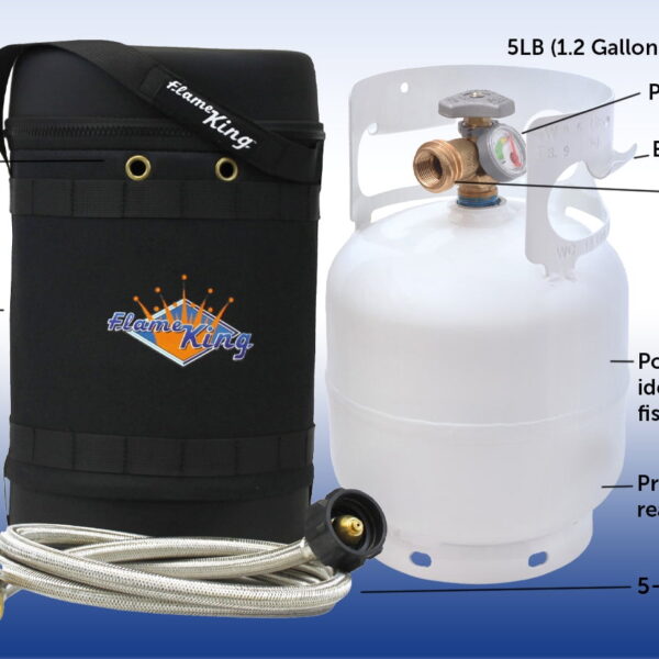 Flame King Gas Hauler Pro Kit – Insulated Protective Carry Case, 5lb Propane Tank with Built-in Gauge and 5-ft Adapter Hose for Camping and Outdoor Adventures