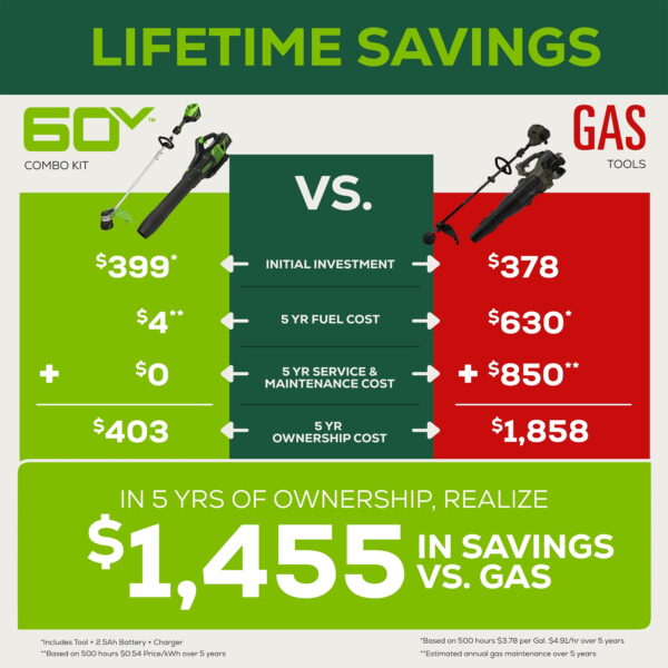 • Greenworks 60V 16" Brushless String Trimmer, 610 CFM Leaf Blower Combo Kit, 2.5Ah Battery & Charger