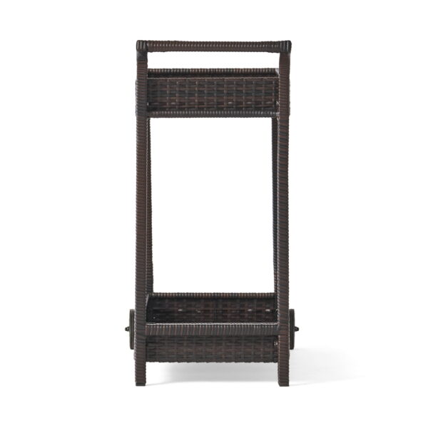 Brown Outdoor Bar Cart with Storage – Wicker Patio Buffet Cabinet on Wheels, for Indoor & Outdoor Use