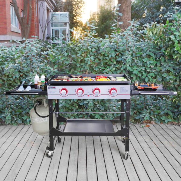 • Royal Gourmet GB4000F 36" Flat Top Gas Griddle, 4-Burner BBQ Grill Griddle with Top Cover Lid, Folding Side Shelves and Legs for Large Outdoor Camping, Black