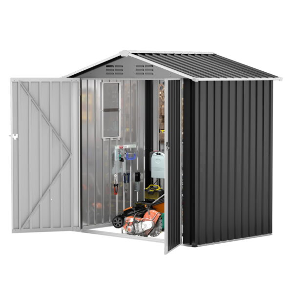 Uforic 6x4FT Tall Storage Shed with Window, Ventilation, Lockable Doors, & Sloped Roof for Outdoor, Dark Gray