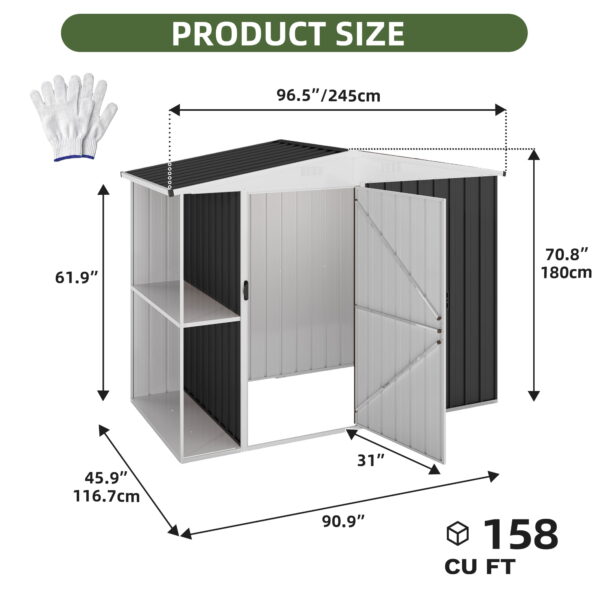 • Uforic 8x4 FT Outdoor Metal Storage Shed with Shelves, Lockable Tool Cabinet for Garden (Black)