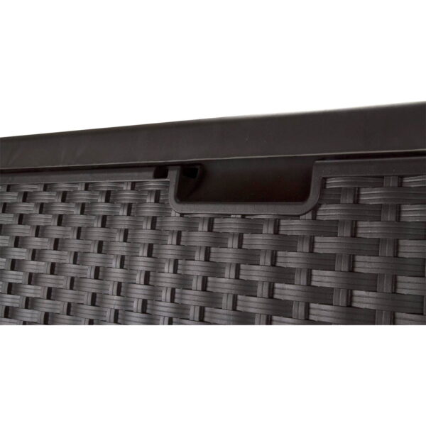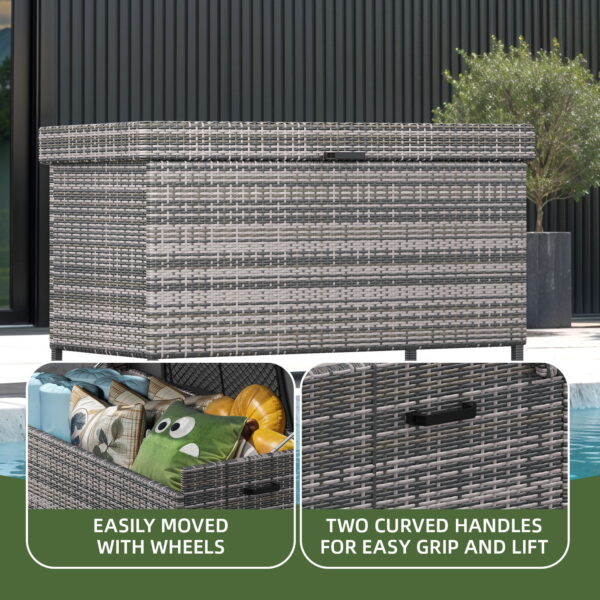 • Uforic 200 Gallon Large Outdoor Rattan Deck Box, Storage Box with Storage Net & Movable Wheels for Patio Furniture, Garden Tools, Gray