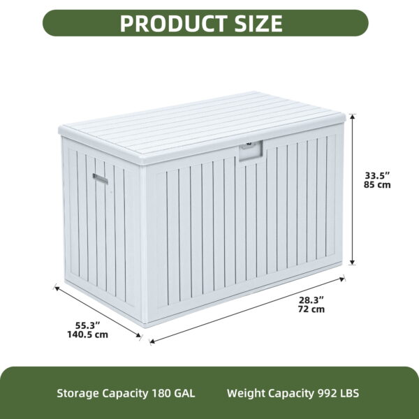 • Uforic 180 Gallon Extra Large Outdoor Deck Box, Double-Wall Resin Storage Box with Flexible Divider, Lockable,‎Weatherproof,White