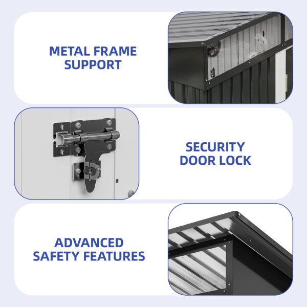 • Uforic Outdoor Storage Shed,4.7x2.5ft All-Weather Waterproof with Hydraulic Struts, Triple Locks, Floor Locking for Garden Tools and Trash Cans