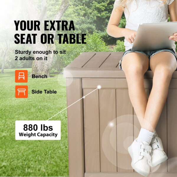 • SKYSHALO 120 Gallon Outdoor Waterproof Polypropylene Deck Box with Padlock