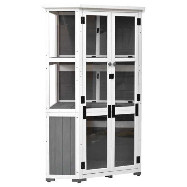 Euroco 63″ Height Garden Wood Storage Cabinet & Mini Greenhouse, Outdoor Tool Storage Shed with Waterproof Roof and Lockable Door