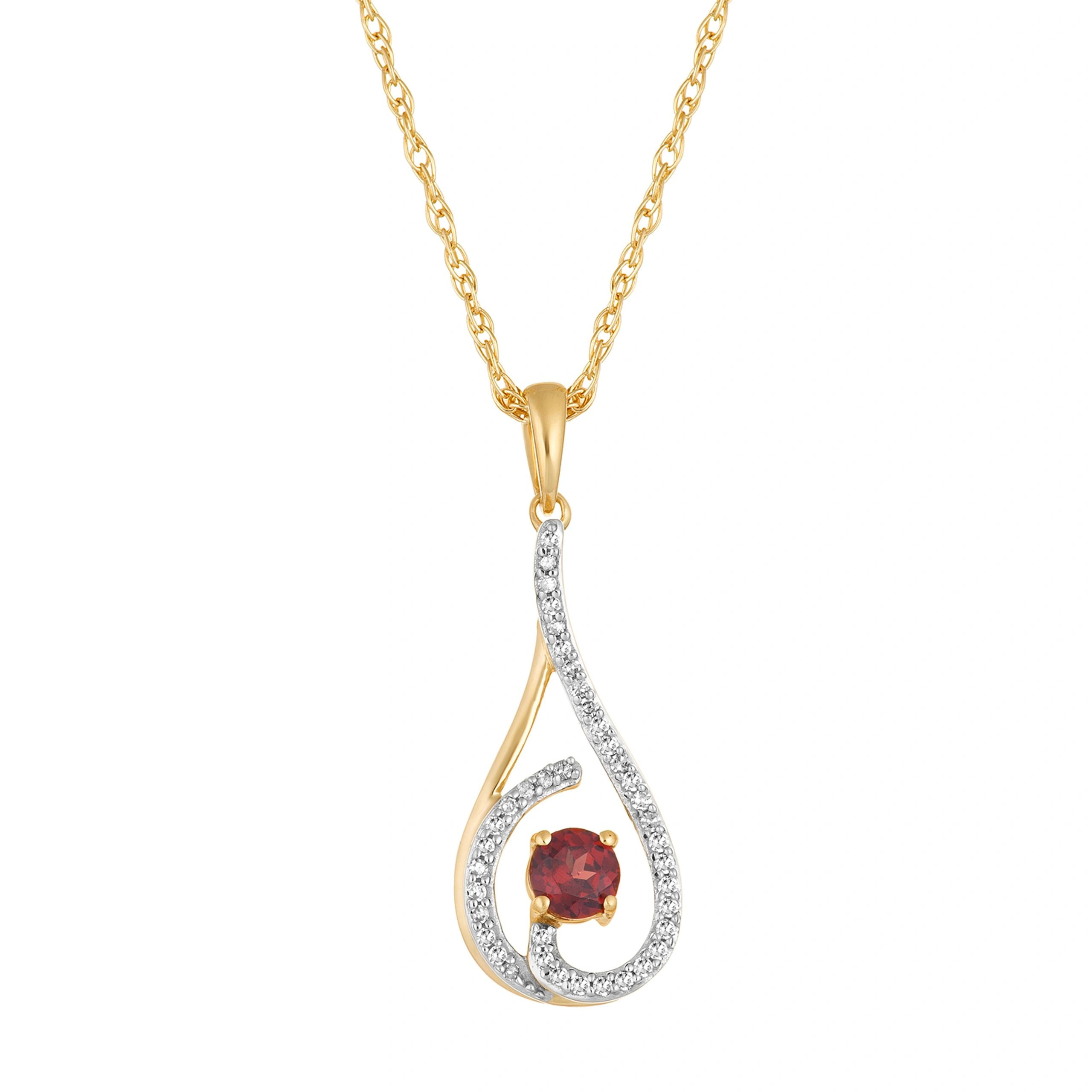 10k Gold Garnet & 1/8 Carat T.W. Diamond Drop Pendant Necklace
