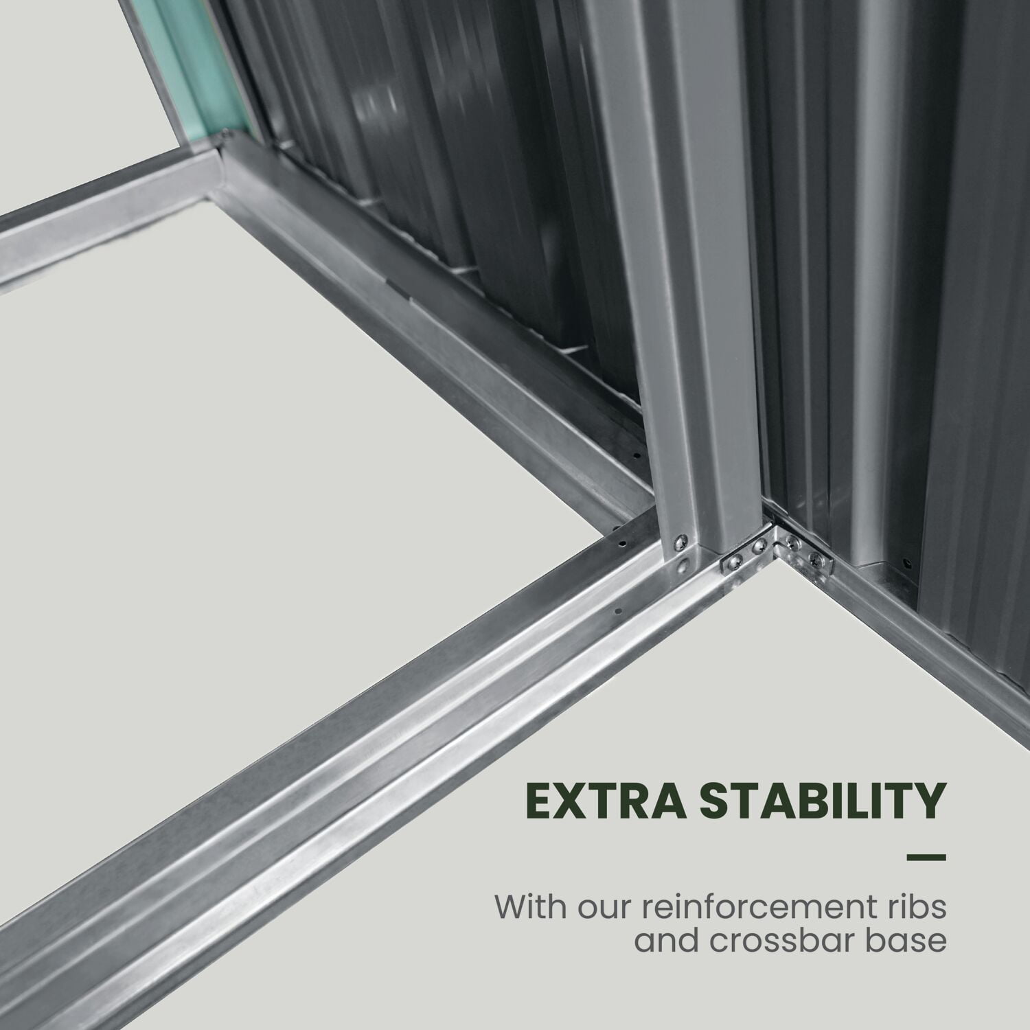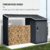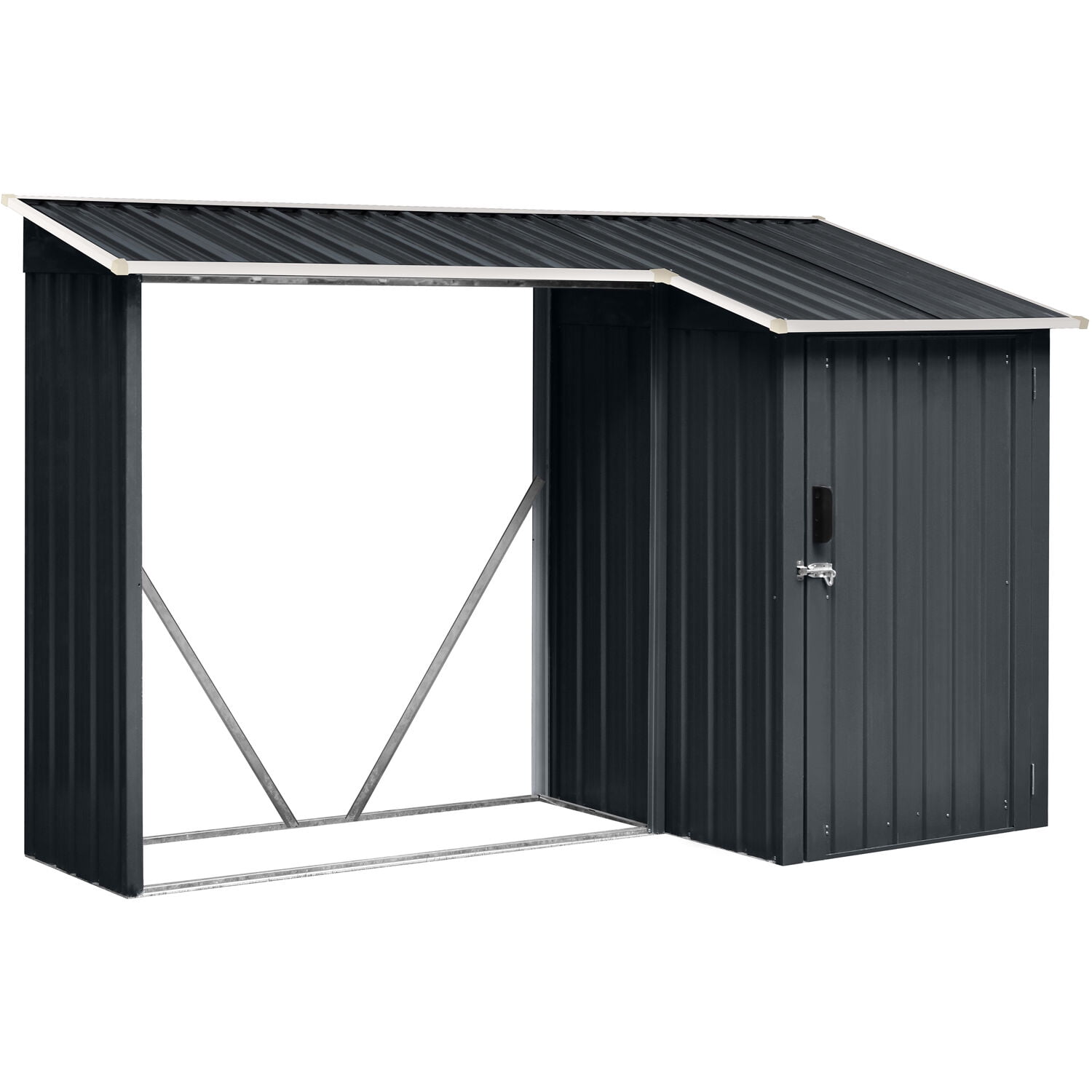 Keep everything organized in one place with Hanover’s convenient 2-in-1 multipurpose firewood shed. Our multi-use marvel includes 9 square feet of lockable storage and an open woodshed that holds up to 42 cubic feet of stacked firewood. Solid and durable, this stylish shed is constructed with powder-coated galvanized steel, resistant to rust, corrosion, and UV rays. Built to last year after year, the sloped roof with gutters allows quick water runoff during rainstorms. The enclosed storage shed features a hinged, single door that opens fully to allow easy access and is secured with a sliding bolt-lock that is padlock compatible (padlock not included). This secure storage area is ideal for storing your lawn tools and garden supplies to keep them safe and dry. Perfect for seasoning and storing all your firewood, the open-sided woodshed allows proper air circulation and easy access. The bottom back reinforcement ribs keep the woodshed stable, and the raised base ribs keep the logs off the ground. For all your outdoor storage needs, depend on quality products from Hanover. PLEASE NOTE: A concrete slab or treated timber foundation is strongly recommended. This shed does not have a built-in floor.
