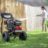 Clean big with the Clean Machine® by SIMPSON®! This fully assembled compact gas pressure washer is lightweight, easy to store, and provides a powerful pressure washing experience. Just set up and you are ready to clean. The Clean Machine features a (49-State compliant) CRX® engine paired with an OEM Technologies™ axial cam pump. The pressure washer steel frame is powder-coated for corrosion resistance. This compact gas-pressure washer will allow easy access to hard-to-clean areas. Unit contains one pressure washer