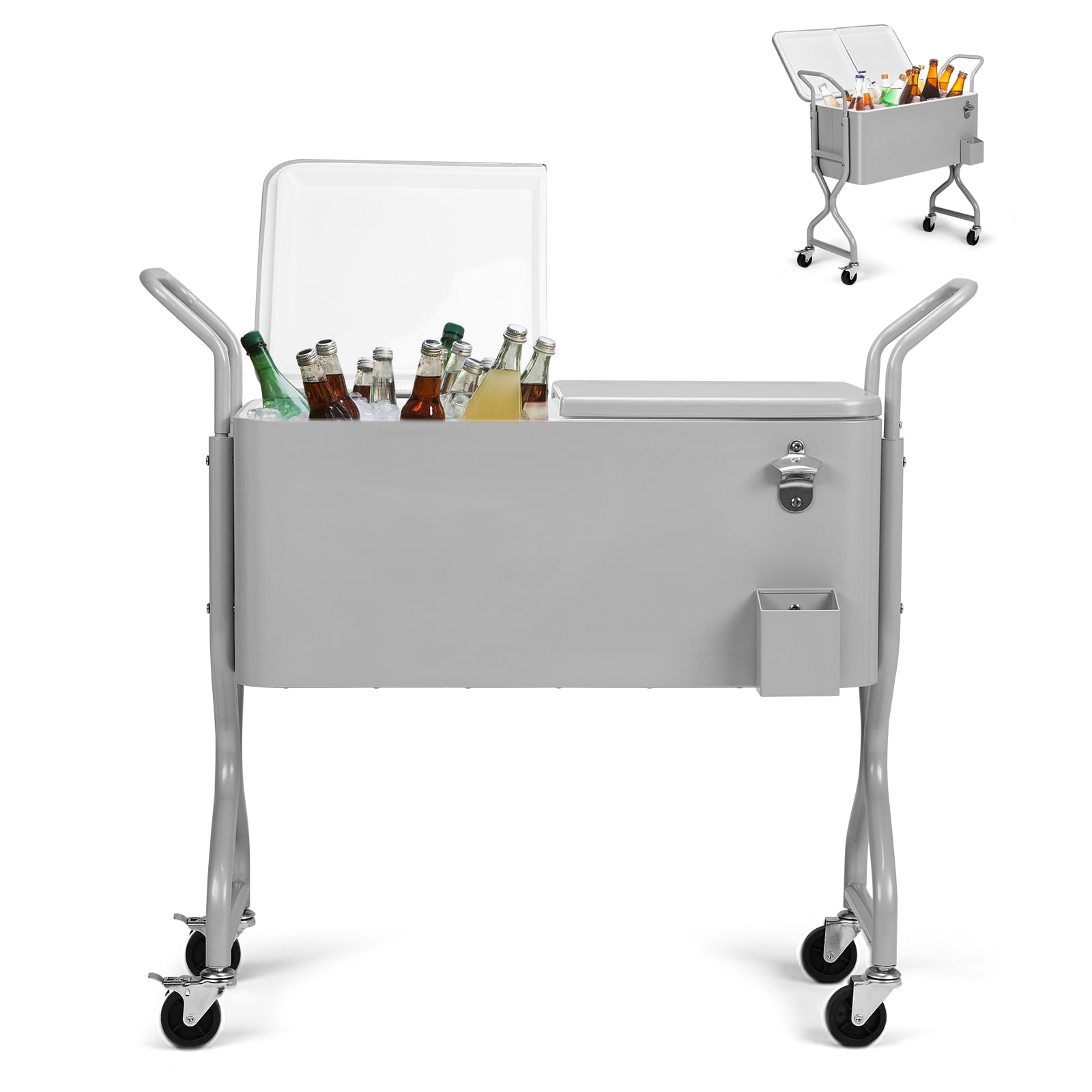 Level up your outdoor events with an all-in-one cooler cart! Fit all the cool refreshments you need with a large, 80-quart fill capacity, and the lower shelf provides extra space for extra beverages or other items you wish to store. Its insulated basin