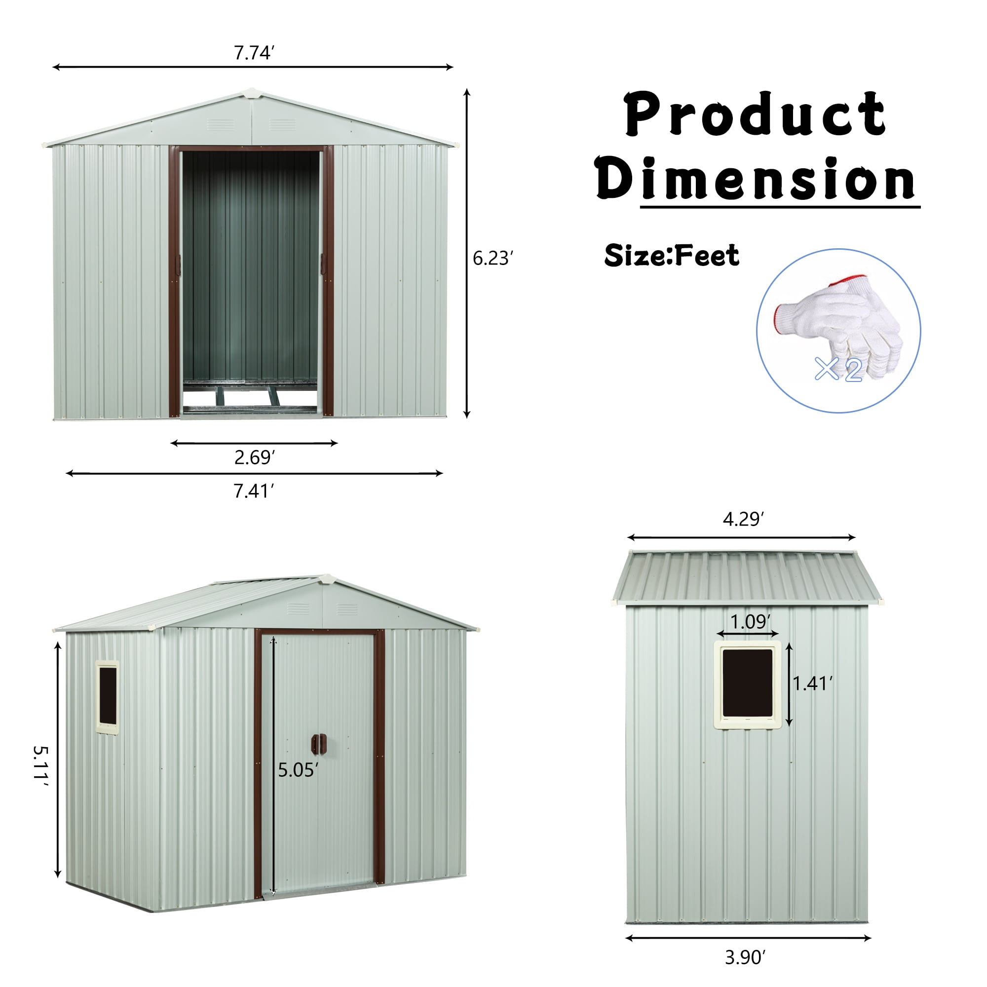 8ft x 4ft Outdoor Metal Storage Shed with Lockable Door for Backyard AENKYO manufactures products that meet the industry’s stringent requirements, our outdoor storage series offers spacious, convenient storage of your landscaping equipment, gardening supplies, tools & accessories, and more while keeping them secure and protected. The upgraded thickened panel guarantees durability and longer service life. This AYO-GND8-012 shed utilizes sui generis aluminum frames which greatly increase the overall sturdiness. On top of that, the galvanized steel panels, coated with eco-friendly painting, can endure harsh weather for at least 6 years. Sturdy and reinforced interior structure to make the shed withstand as long-lasting.