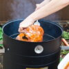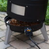 Perfect your back yard barbecuing with the Americana 2-in-1 Electric Water Smoker. This chimney-style smoker offers easy side access doors to monitor water and wood chips. Keep careful track of the temperature with the built-in temperature gauge. The 5.5 quart water pan and flavor channels ensure tender, moist, delicious smoked foods. When you are on the go the base and the hood of the smoker interlock to convert into a Lock ‘N Go electric grill. This electric smoker/grill can plug into any standard outlet. Savor slow-cooked foods or enjoy burgers at the lake with this versatile smoker and grill.
