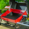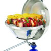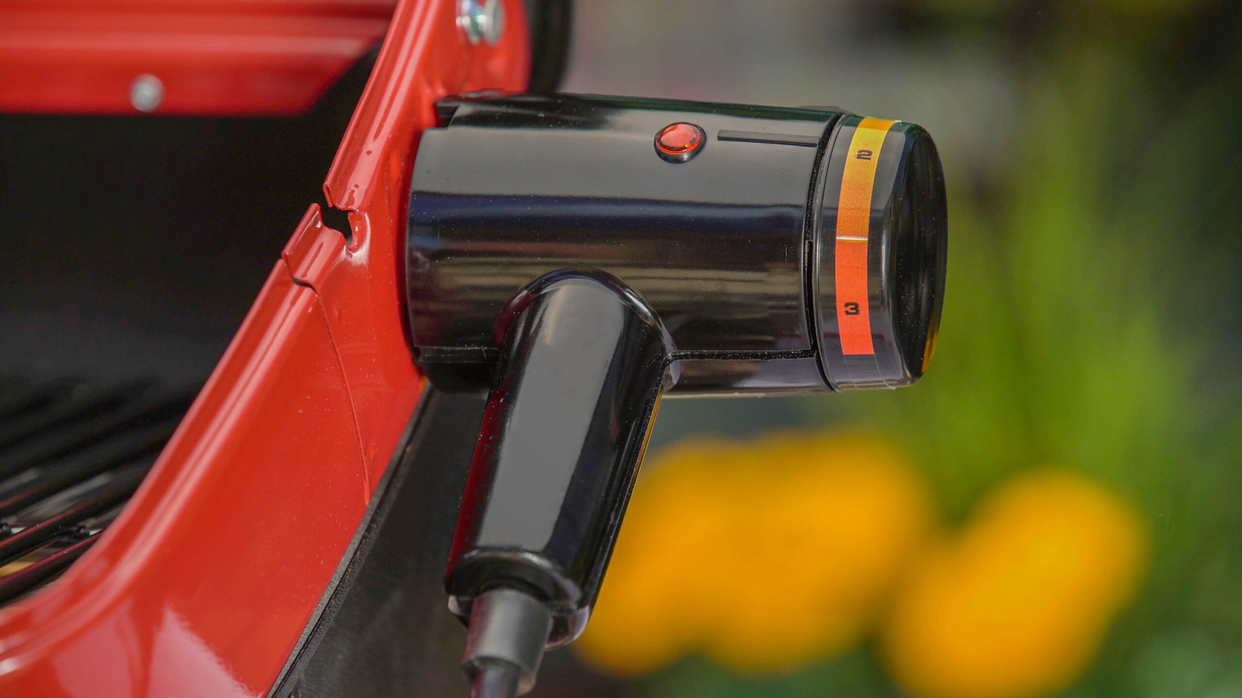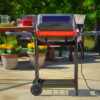I AM A REAL BBQ GRILL! DO NOT USE ME INSIDE! REAL BBQ flavor with the ease and safety of electricity! No charcoal mess, no heavy propane tanks, just amazing BBQ flavor. And try adding hickory, apple, cherry, or mesquite wood chips to infuse your recipes with maximum BBQ flavor! Better heat control than charcoal or propane is achieved with the total variable temperature Control. The 9300 Series offers the “Best of the Best” in electric grilling with features like a 3-Position Heating Element and an optional Rotisserie Grilling Veggies, Fish, and Poultry is a breeze. The unique Reflector Pan design and 1,500-watt heat source generate temperatures needed to handle the thickest steaks and chops! Meanwhile, the stay-cool handle keeps your hands safely away from the grilling action. The Durable high-temperature finish looks great on decks, patios, or a balcony. And 200 sq. inches of cooking surface lets you “grill-it-up” for groups large or small. All this, and the safety of a UL and CUL listed heating element that plugs into any standard household outlet. The Resilient-Deluxe 9350 Americana Electric Grill features easy clean-up removable grease cup, a handy see-through window, a sturdy steel cart with wheels, a steel-grid lower storage shelf, and two Side Tables. The large 15.5” x 13.5” Side Tables are constructed of a weather resistant and super-tough ABS Polymer.