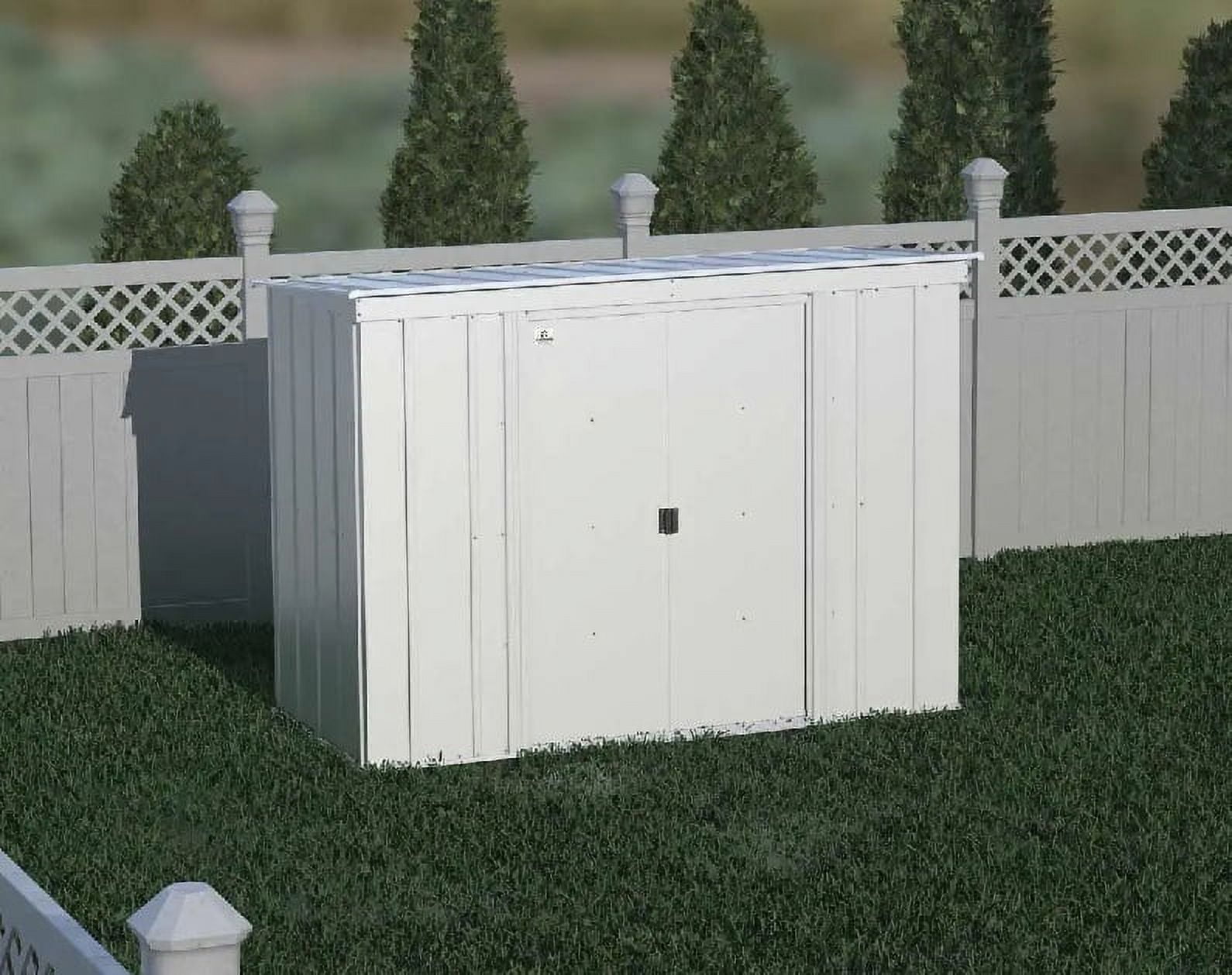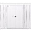The Arrow Classic series steel storage shed is engineered to protect your landscaping equipment, tools, and gardening supplies, and keep them safe from the elements. The shed is made of galvanized steel that’s treated to prevent rust and corrosion. It has a low gable roof that’s designed to prevent water from pooling. It has sliding doors that can be secured with a padlock. The Arrow Classic is a good-looking unit, too. The shed’s timeless vertical wall panels are finished with smooth, hard-wearing Valspar polyester paint finish protects against the elements and seals the steel against rust and corrosion.
