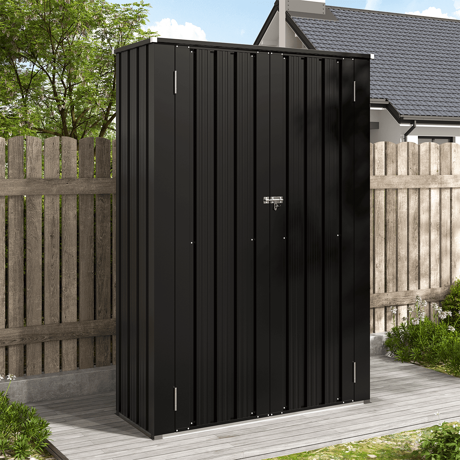 Bapipro 47″x19″ Metal Storage Cabinet – Slim yet spacious 34 cu.ft vertical storage with 2 adjustable shelves (75lb capacity each). Features all-weather galvanized steel construction, lockable door, and fits tight spaces like garages/patios. Quick assembly with included tools.