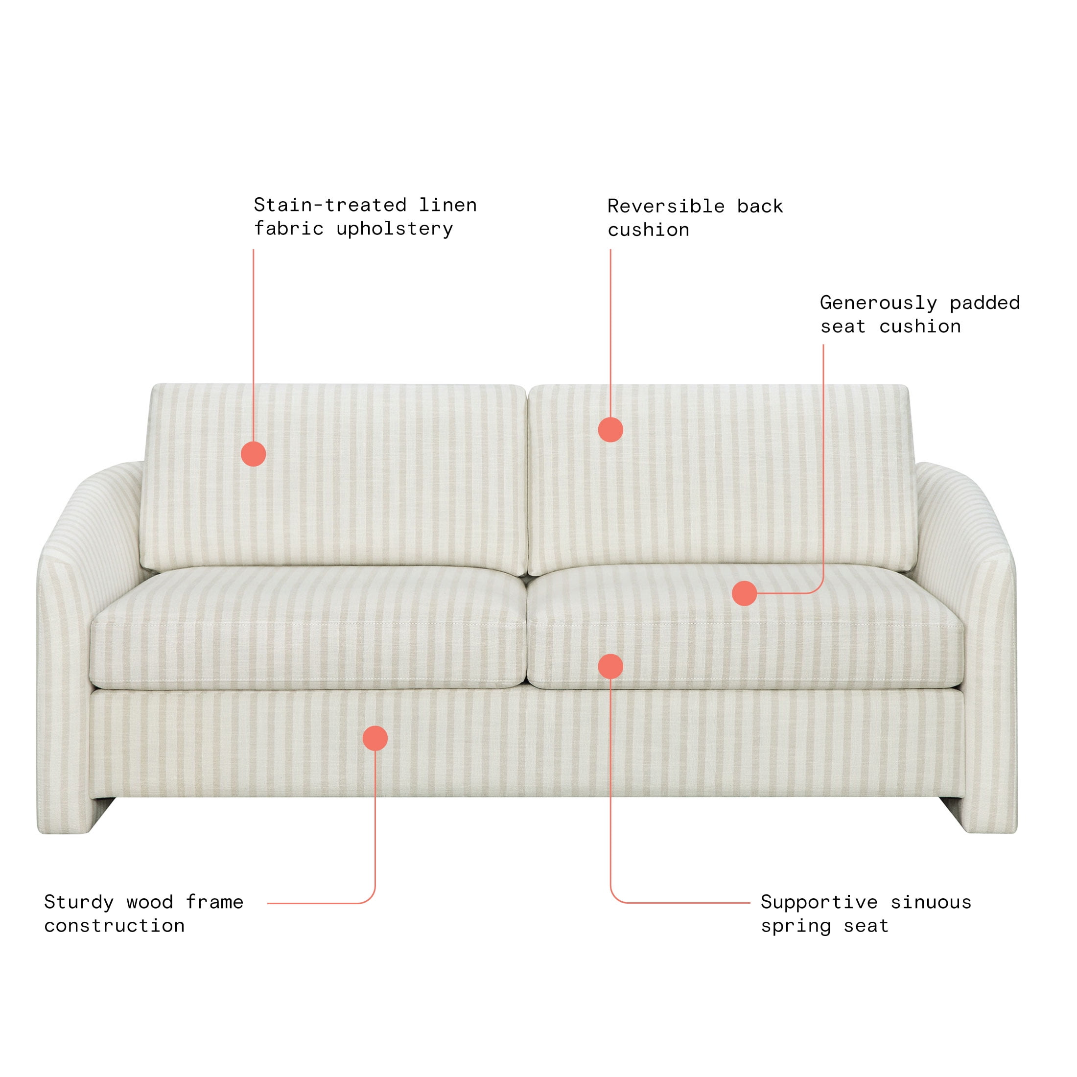 Create a cozy and stylish living space with the Beautiful Drew Sofa. Perfect for living rooms, family rooms, or lounge areas, this sofa is available in cream and charcoal to match your decor. The stain-resistant bouclé or linen fabric is both practical and chic. Built with a solid wood frame, it offers lasting durability. Enjoy comfort with reversible back cushions and sinuous spring seat support. Rounded armrests add an elegant touch, making it a welcoming spot to relax. Whether you’re hosting guests or unwinding after a long day, the Beautiful Drew Sofa fits your lifestyle. Pair it with other Beautiful by Drew Barrymore Furniture collection pieces to complete your space (sold separately). Recommended for adults, ideal for living rooms and family spaces.