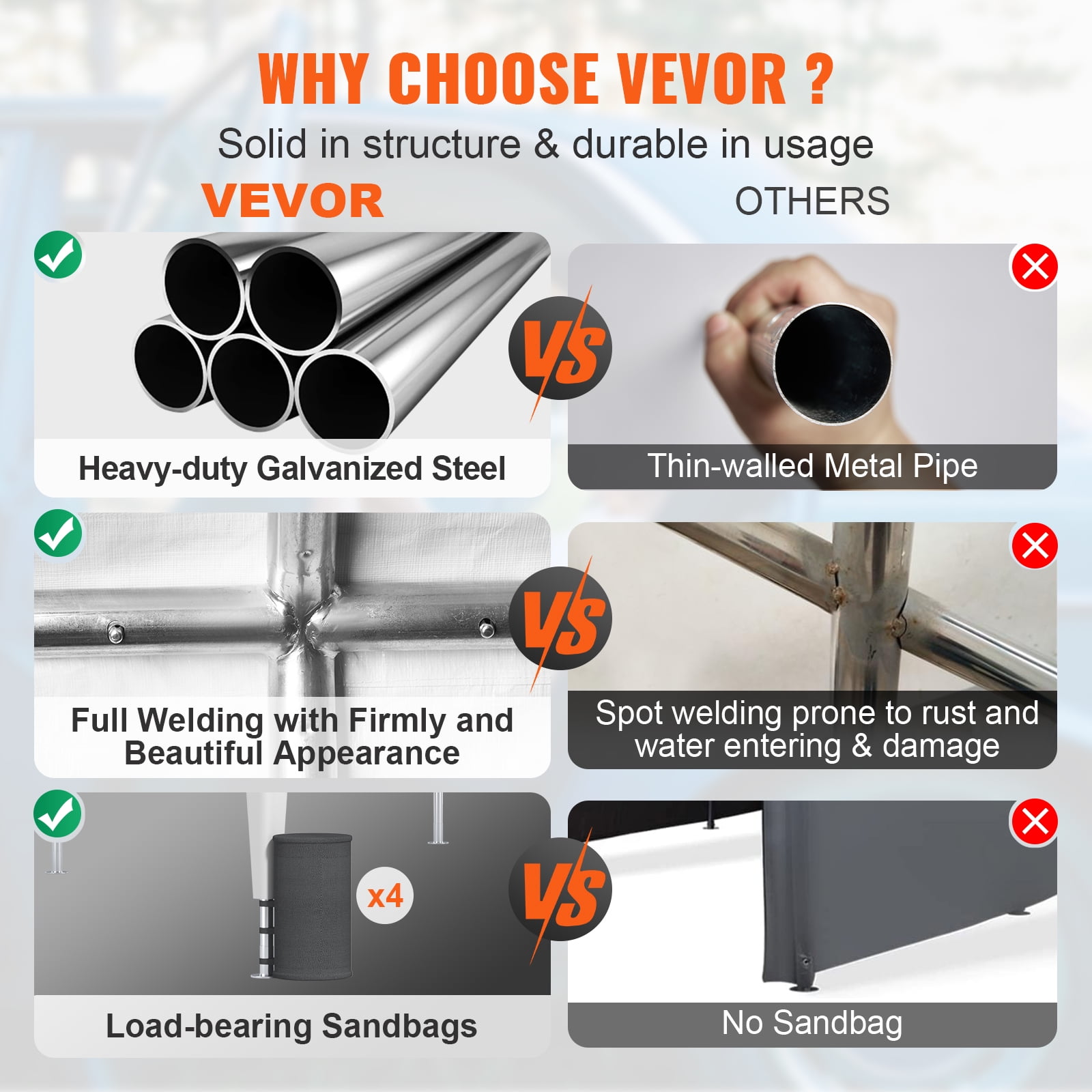 The stable tent frame comprises 8 galvanized steel pipes and machine welding joints. Feel at ease when you start your next big camping adventure, even on windy days.