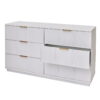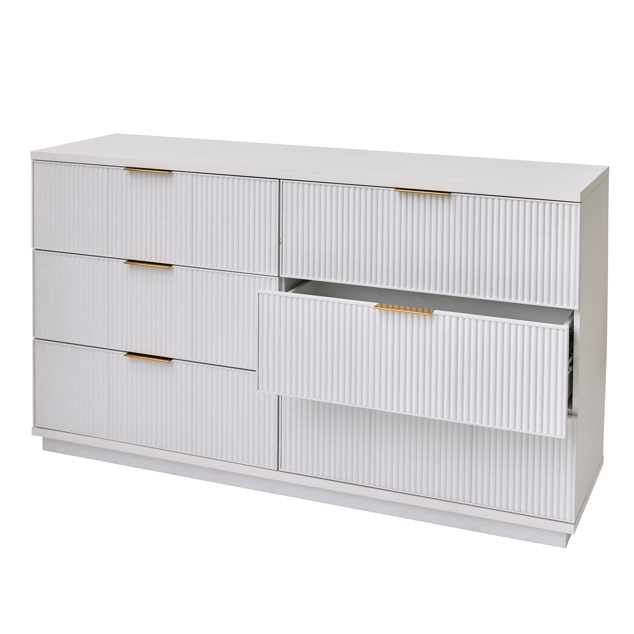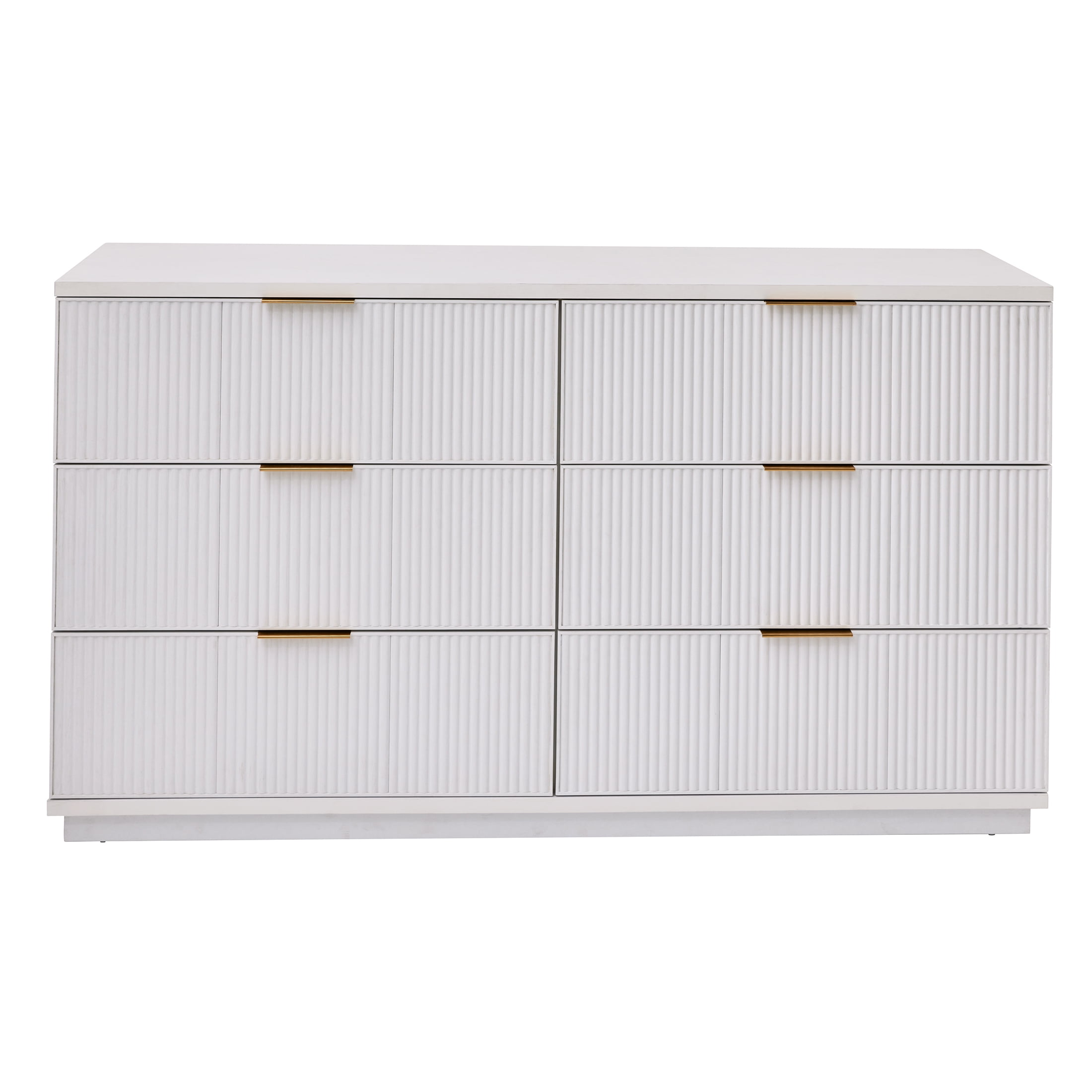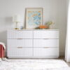 This Better Homes and Gardens Lilian 6 drawer dresser will keep your room neatly arranged and organized! Featuring 6 white deep dresser drawers, this dresser has enough storage space to store a large number of household items whilst still allowing for perfect partitions of item types. The clean white bedroom furniture colour accompanied with clean lines of the drawer panel pattern, makes it perfect whether you want to use it as a white 6 drawer dresser for bedroom or as a chest of drawers storage unit in your living room, engineered wood dresser for foyer or entrance hall.