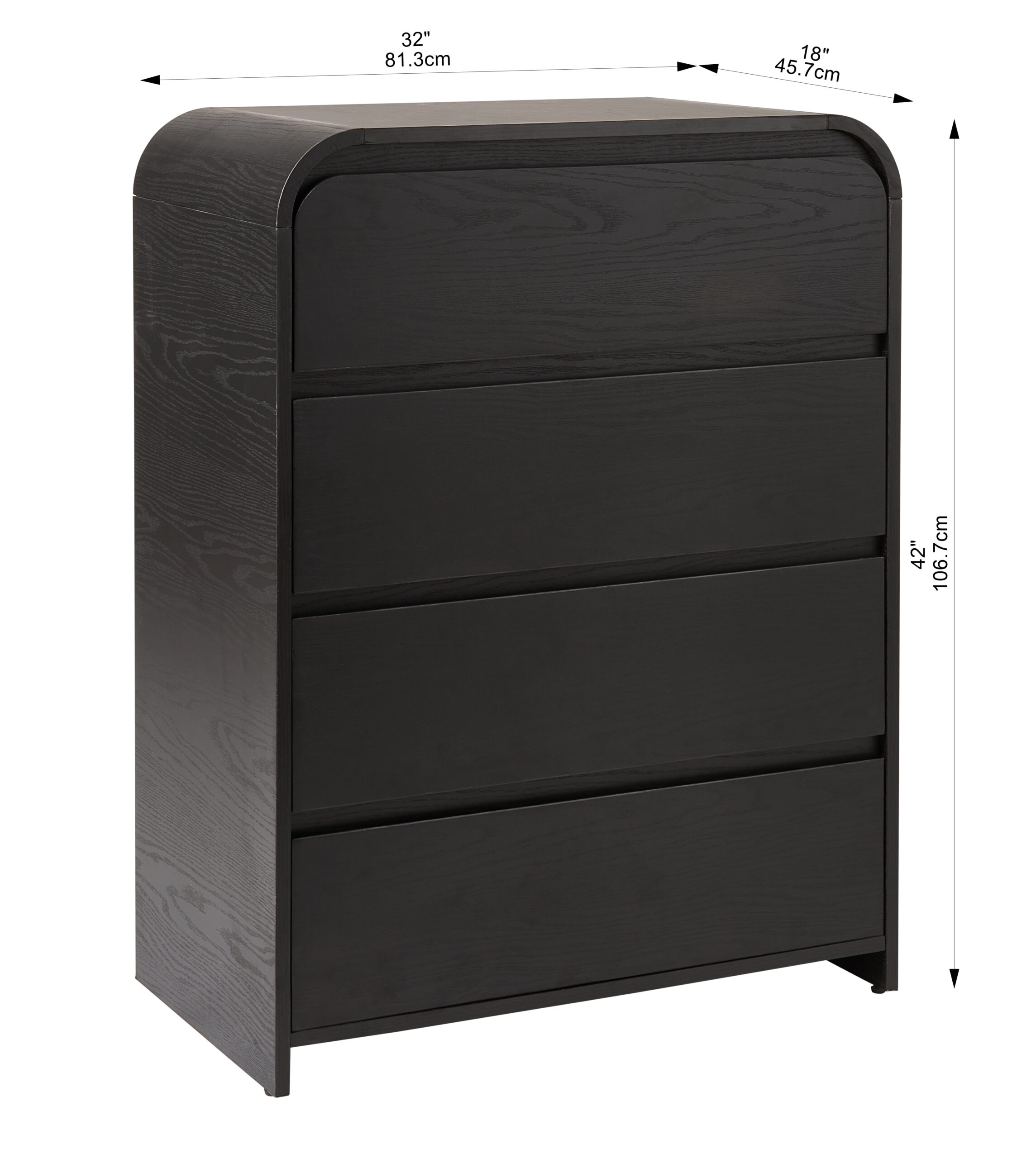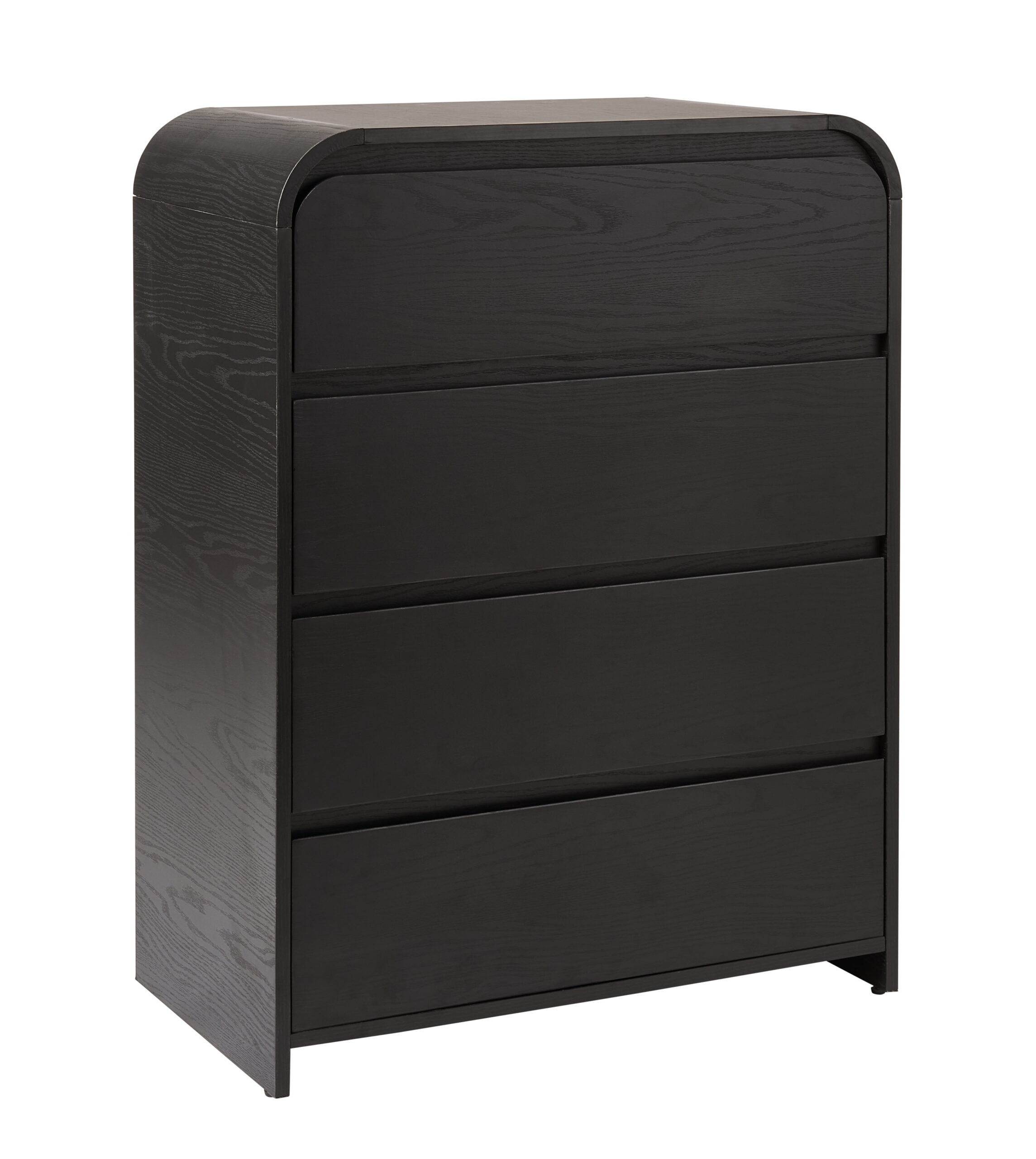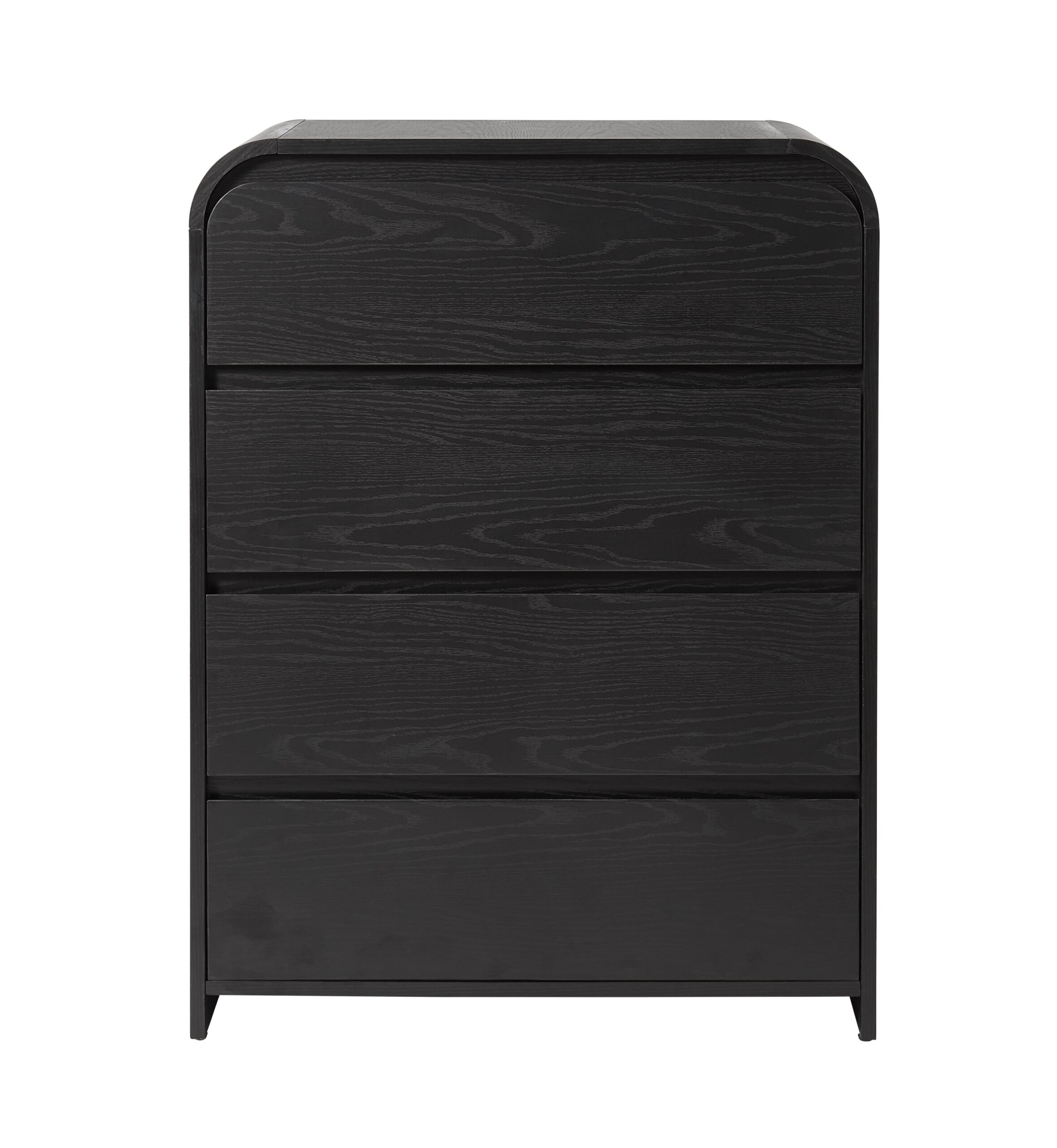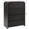 Upgrade your bedroom with the modern Better Homes & Gardens Juliet 4-Drawer Wood Dresser in a rich black finish. This contemporary chest of drawers offers versatile storage and sleek style, making it the perfect fit for modern, boho and new traditional decorating styles. This tall dresser is crafted from premium MDF and its spacious drawers feature smooth-gliding rails for effortless access and long-lasting durability. The deep black exterior, accented by a natural woodgrain pattern, adds a bold, sophisticated touch to any décor. While ideal for organizing clothing, this 4-drawer dresser could also be used as storage in an office or hallway, and is the ideal base for displaying decorative accents. Pair it with other pieces from the Juliet Collection for a cohesive, modern room style.
