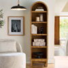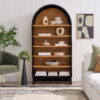 The Better Homes & Gardens Juliet Narrow Arch Bookcase is a perfect blend of form, function, and flair for your home. This bookcase is a statement of elegance and versatility, designed to enhance any interior décor. With its rounded arch top, the Juliet Narrow Arch Bookcase captivates with architectural grace and a modern twist, available in two chic finishes: Light Honey and Black. These options ensure a perfect match for your personal style, whether you’re aiming for a bright and airy vibe or a sleek, sophisticated look. The Juliet ladder bookcase stands out with its five spacious shelves, each adjustable to accommodate your collection of books, cherished collectibles or decorative pieces. This flexibility makes it an ideal solution for those who love to refresh their spaces or display an ever-changing array of items. The shelves are built to be sturdy, ensuring that your treasures are displayed securely and stylishly. Crafted with durability in mind, the Juliet Narrow Arch Bookcase promises long-lasting quality. Whether it finds a place in your living room, study, or hallway, this modern bookshelf is designed to elevate your space and showcase your style with sophistication. Make the Juliet part of your home and enjoy the perfect combination of beauty and practicality it brings to every corner. The Better Homes & Gardens Juliet Narrow Arch Bookcase more than a bookcase – it’s a centerpiece that reflects your taste and complements your lifestyle.