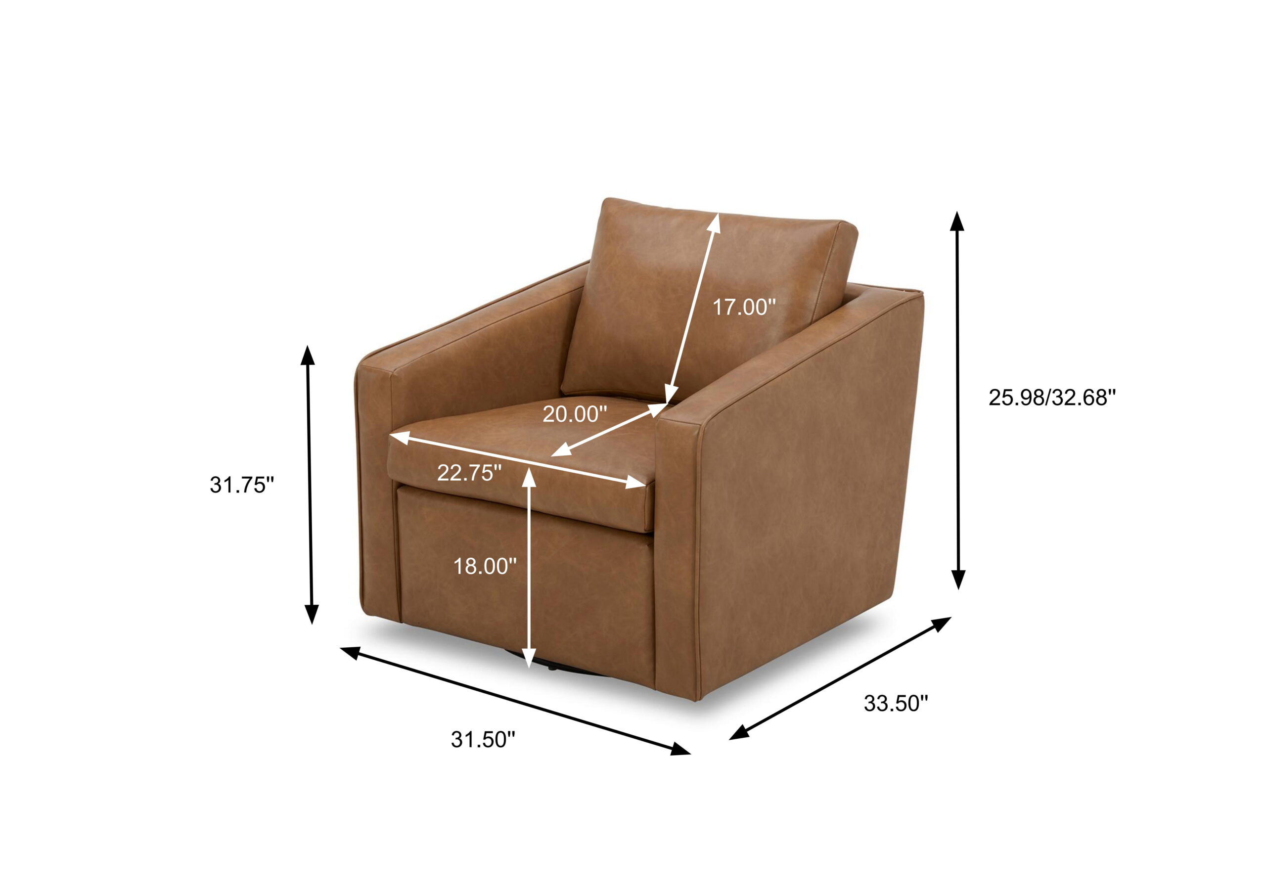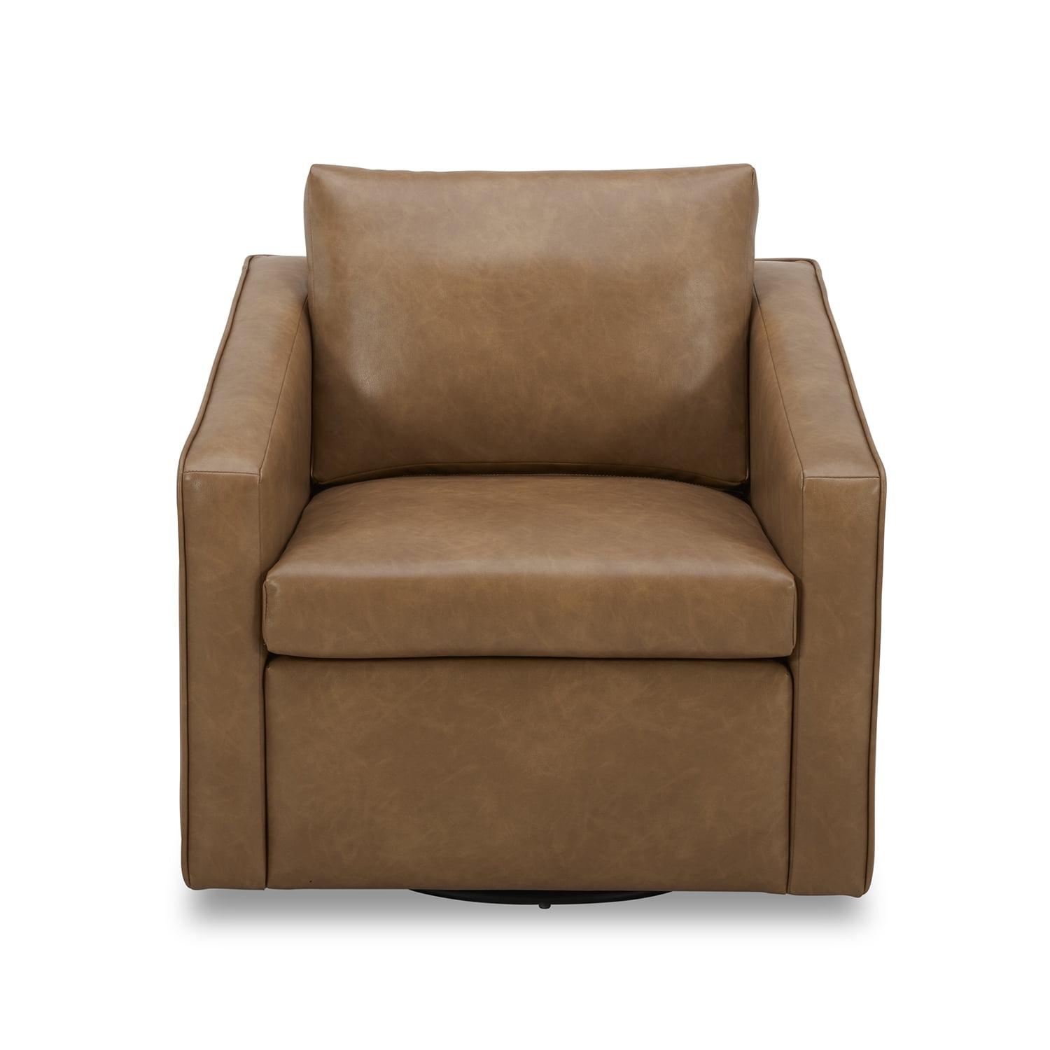 Upgrade your living room seating with the stylish and comfortable Better Homes & Gardens Steele Swivel Chair. Featuring square arms and camel faux leatherl fabric, this chair is both stylish and comfortable. Preassembled for your convenience, this hassle-free chair is perfect for any living space. With its square design and camel fabric, this chair adds a touch of sophistication to any room.