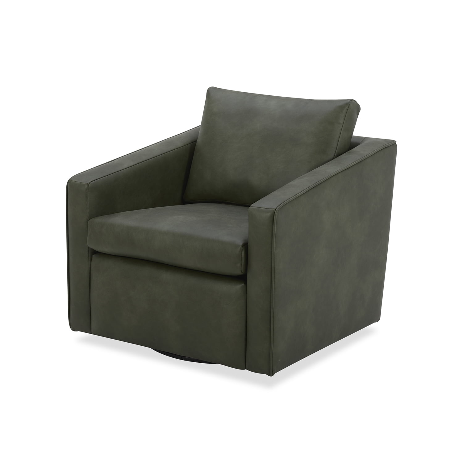 Upgrade your living room seating with the stylish and comfortable Better Homes & Gardens Steele Swivel Chair. Featuring square arms and olive faux leather fabric, this chair is both stylish and comfortable. Preassembled for your convenience, this hassle-free chair is perfect for any living space. With its square design and camel fabric, this chair adds a touch of sophistication to any room.