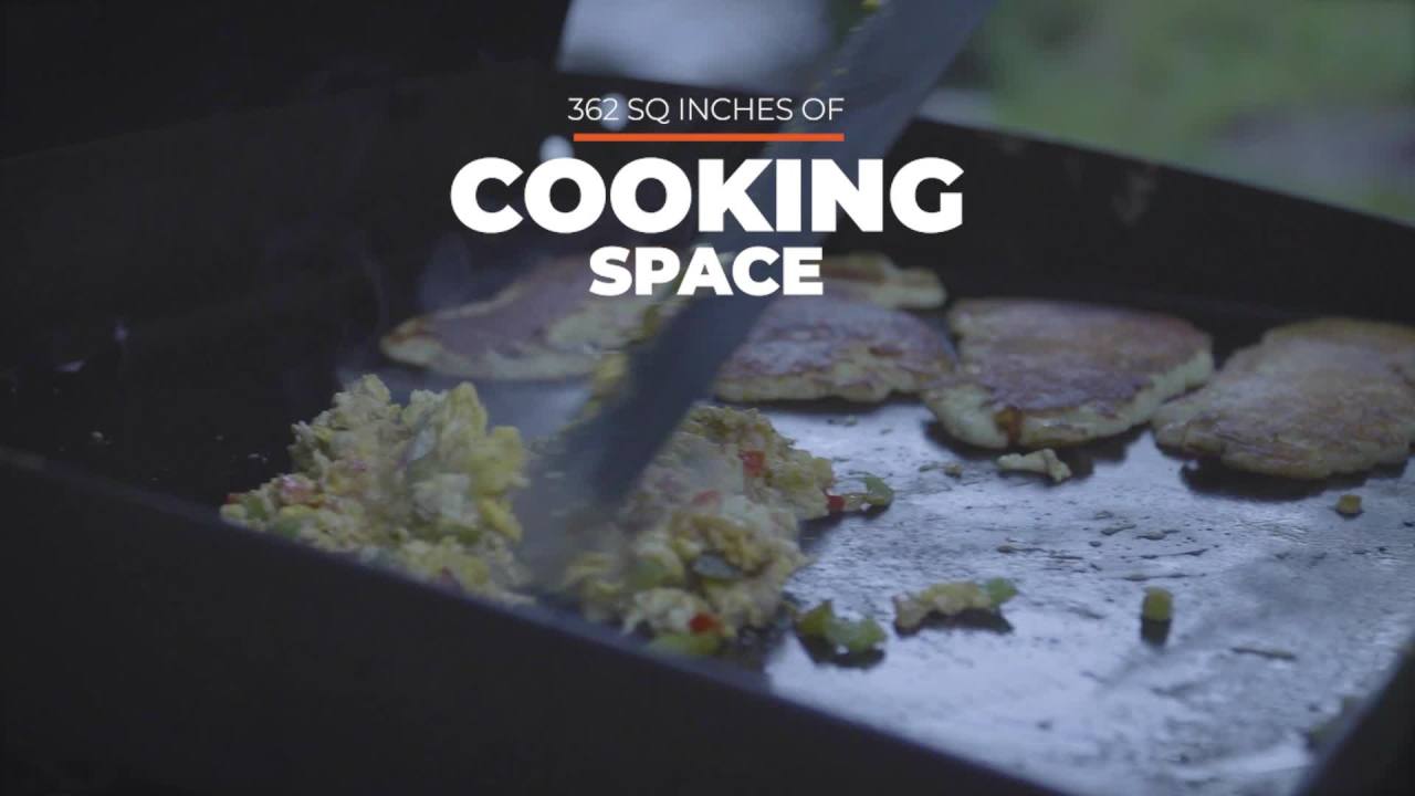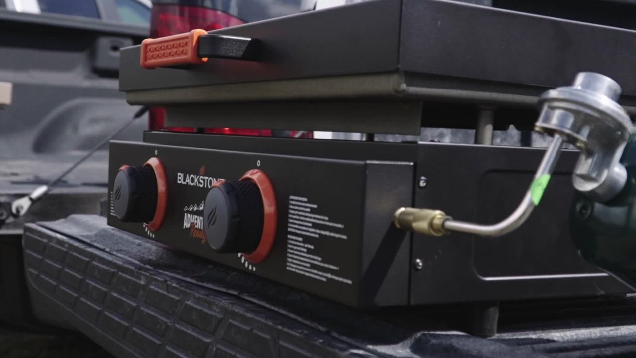 Satisfy your hunger for amazing food with the updated Blackstone 22″ Adventure Ready propane griddle on your next outdoor adventure. With 362 sq in of cooking space and 21,000 BTU’s, you’ll be equipped to cook for your loved ones in the great outdoors. Not only does this bundle include the 22″ griddle, but it also comes with a matching hardcover to help keep your griddle clean between uses. The hardcover is designed with a heat-resistant, rugged handle grip and interior hooks to hang it off the back of the griddle while cooking. Enjoy other elevated design elements on this model like the sleek, easy-glide burner dials with pops of orange. Blackstone delivers quality every time with features like the rear grease management system and stainless-steel, H-shaped burners that will ensure you’ll enjoy your griddle for years to come. Give the gift of a Blackstone 22″ Adventure Ready griddle to an outdoor enthusiast this Holiday Season.