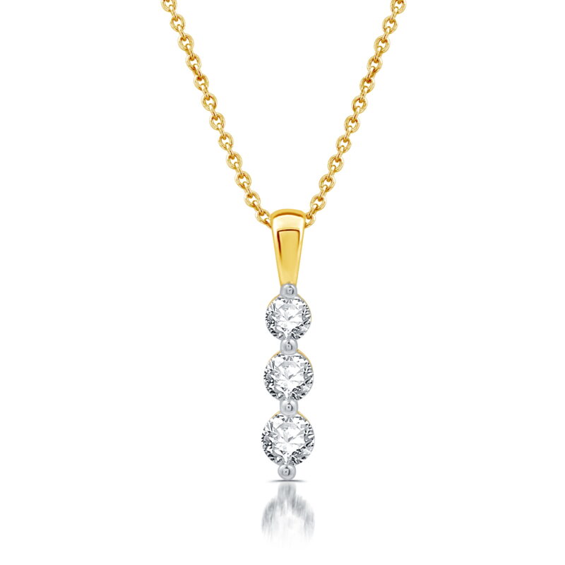 Brilliance Fine Jewelry 1/2 CTTW Lab Grown Diamond Three Stone Women’s Pendant Necklace 14K Yellow Gold Plated