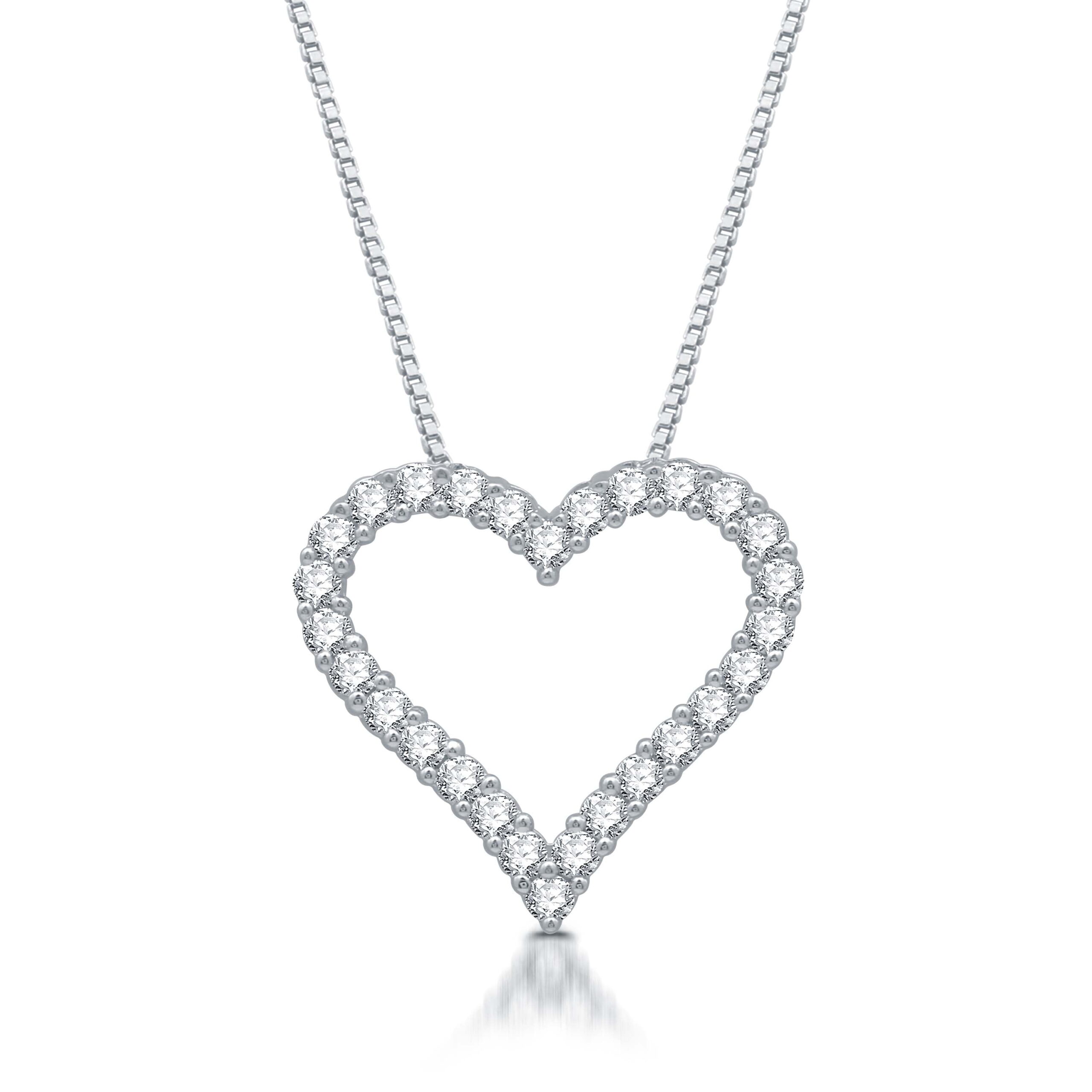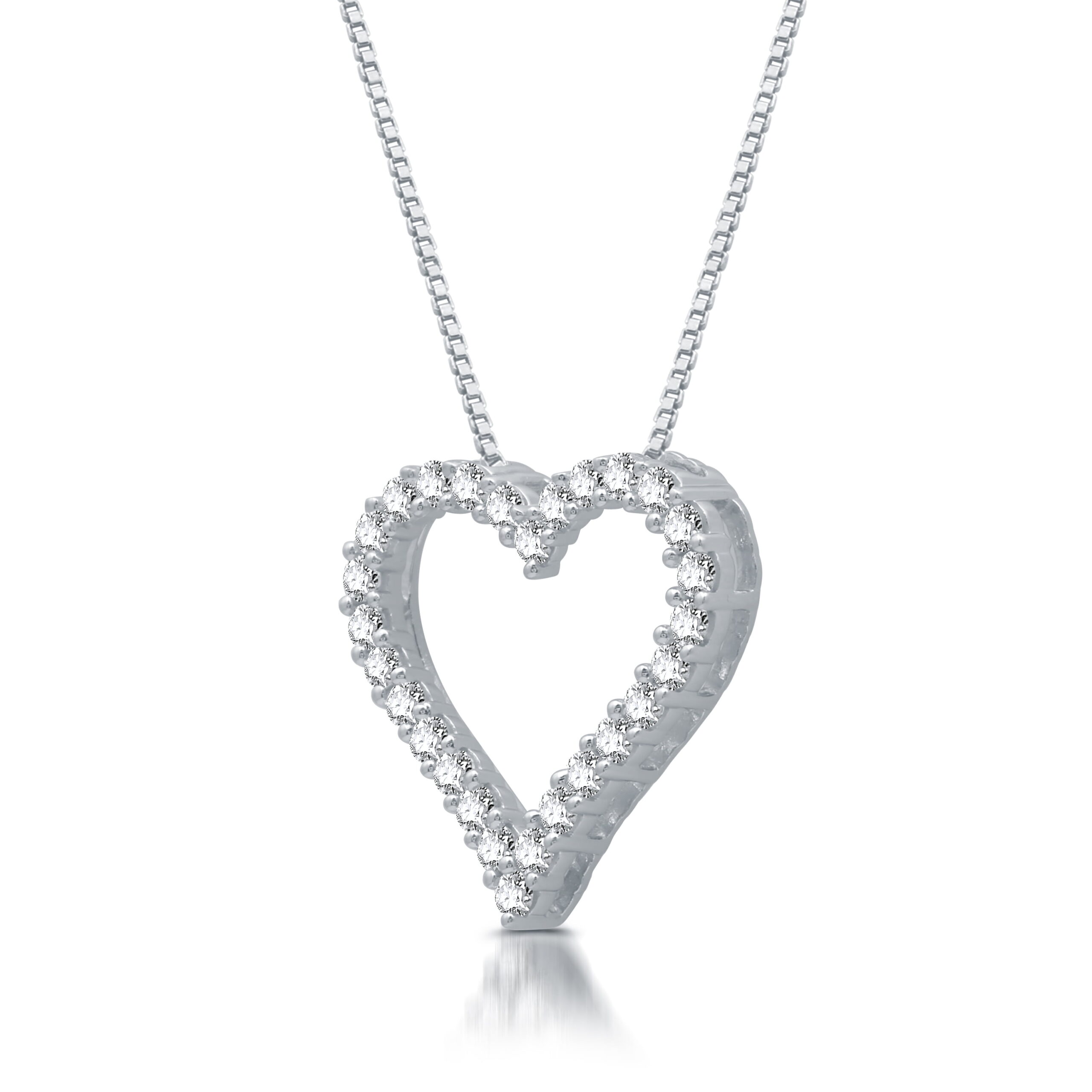 Indulge in the ultimate expression of love with our 1/2 CTTW Lab Grown Diamond Lined Heart Pendant in Sterling Silver. Expertly crafted with a 0.50 carat total weight of lab grown diamonds, this stunning piece radiates brilliance and sparkle. Boasting unparalleled artistry, this exquisite work of art features SI1-SI2 clarity lab grown diamonds, which take form in a heart shape and prong setting in .925 sterling silver, culminating in an exquisite piece of jewelry that is sure to capture your loved one’s heart. Coupled with an 18 inch chain and a secure spring ring lock, the elegance of this piece is matched by its practicality. Delivered in a gift box, it makes for a perfect gesture of love and appreciation for that special someone.