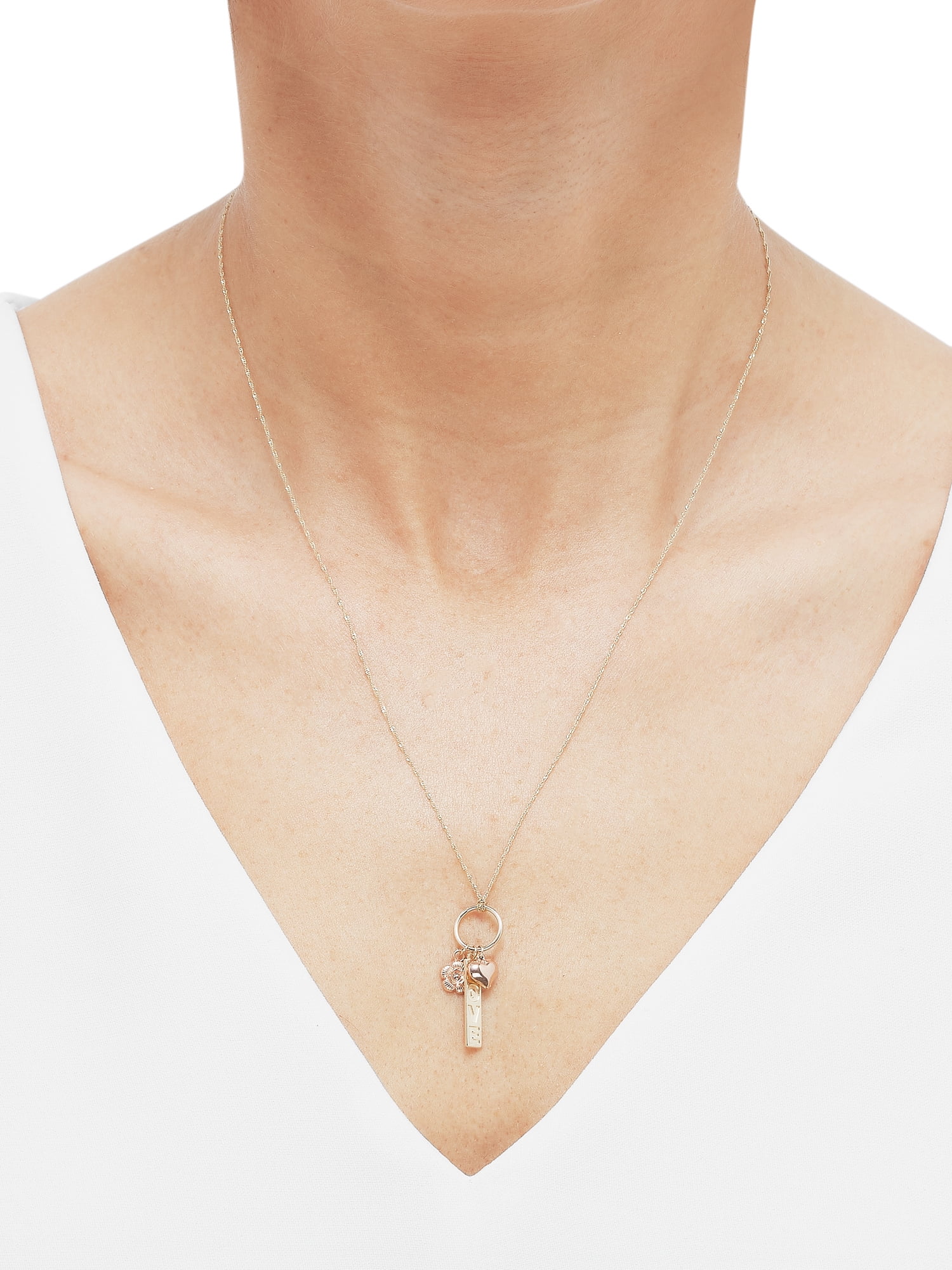 Brilliance Fine Jewelry 10K Two Tone Gold Love Bar, Flower, Puffed Heart Necklace,19″