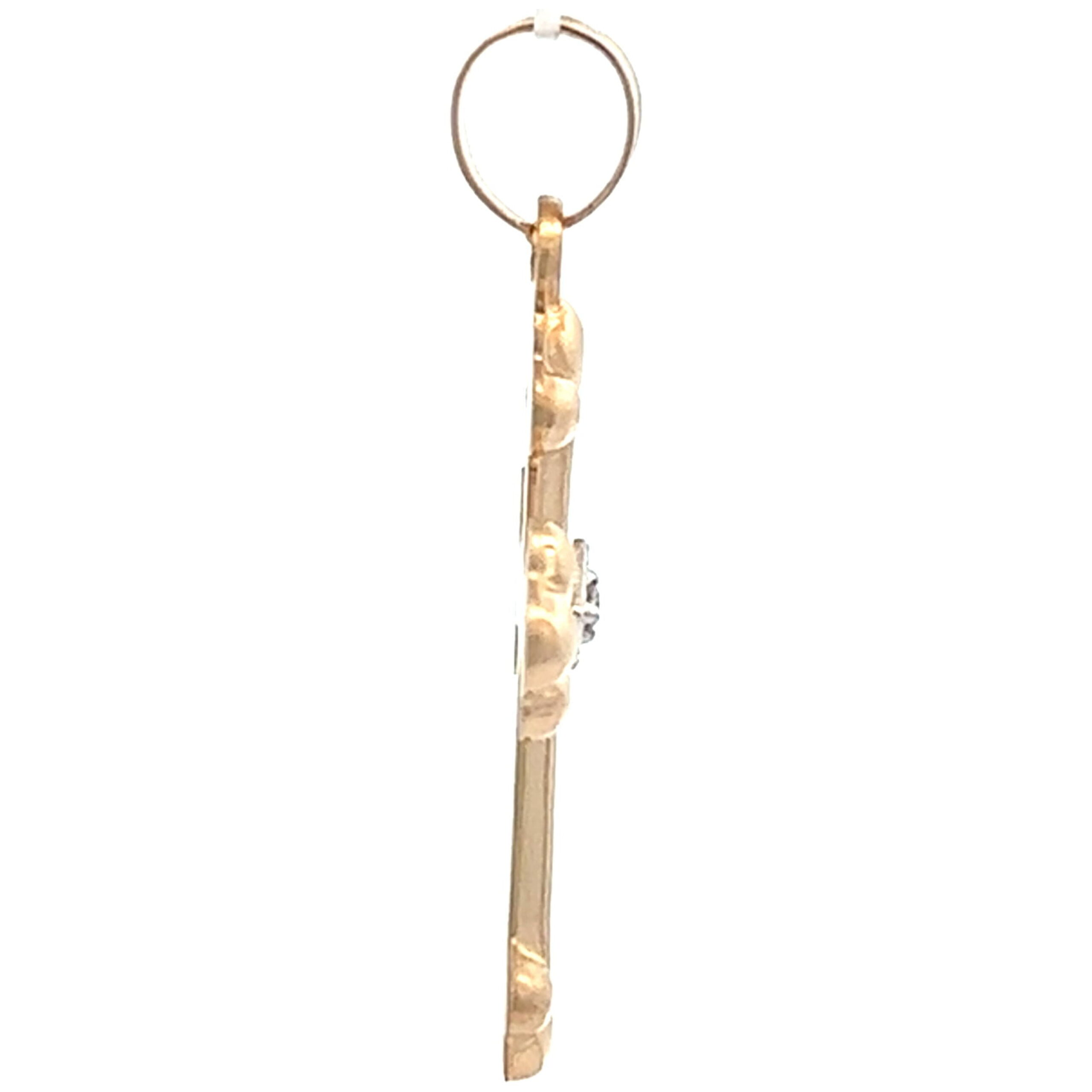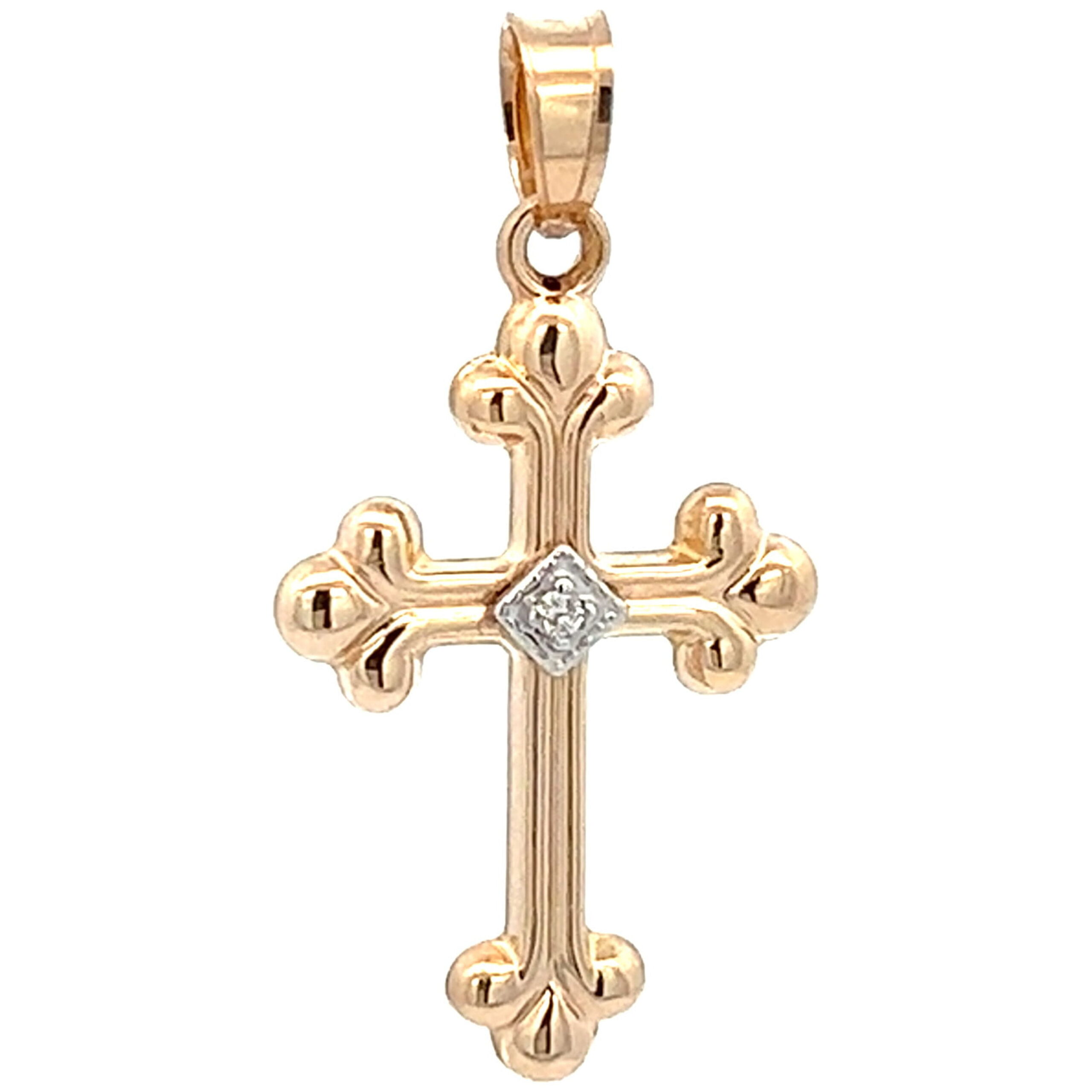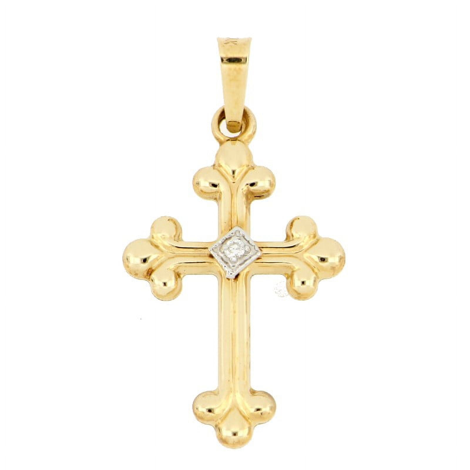 Illuminate your faith with our exquisite 14K Gold Fleur De Lis Cross, featuring a delicate design adorned with a radiant 0.01Ct diamond. Crafted with precision and elegance, this cross pendant exudes a timeless charm, symbolizing the divine connection and blessings it represents. The sophisticated silhouette adds a touch of grace to any outfit, making it a cherished accessory for daily wear or special occasions. Embrace the divine sparkle of this remarkable cross, a tangible expression of your unwavering devotion and the everlasting beauty of faith.
