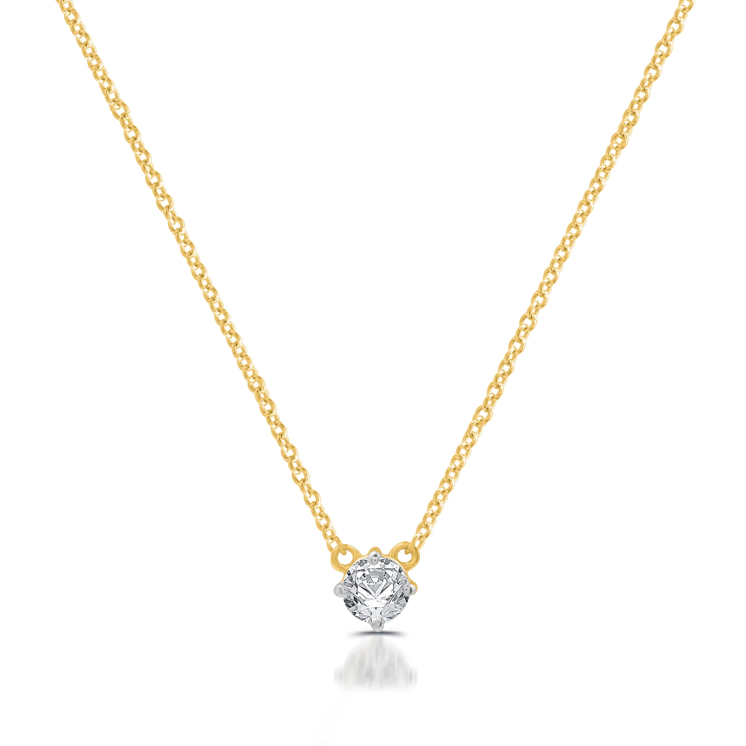 Brilliance Fine Jewelry 1/4 Ct Round Lab Grown Diamond Solitaire Women’s 14k Yellow Gold Plated Solitaire Necklace, Round F Color SI1-SI2 Clarity, Cable Chain.