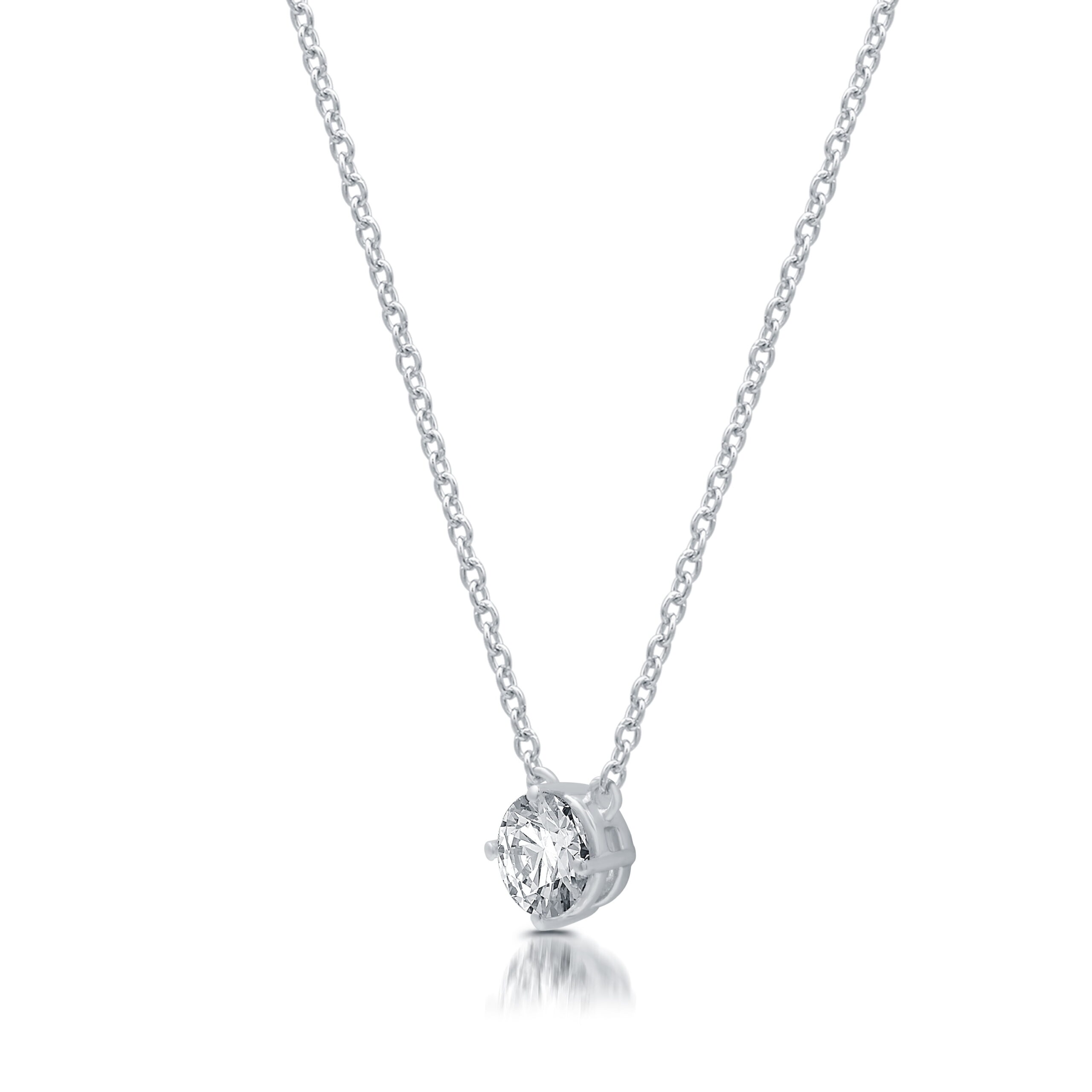 Elevate your everyday style or complete an elegant evening look with this timeless solitaire necklace. Expertly crafted from .925 sterling silver, this piece features a dazzling lab-grown diamond in a classic round cut, suspended elegantly on an 18-inch cable chain. The solitaire diamond (1/2 carat total weight) shines with exceptional brilliance, boasting F color and SI1-SI2 clarity for a flawless, eye-catching sparkle.