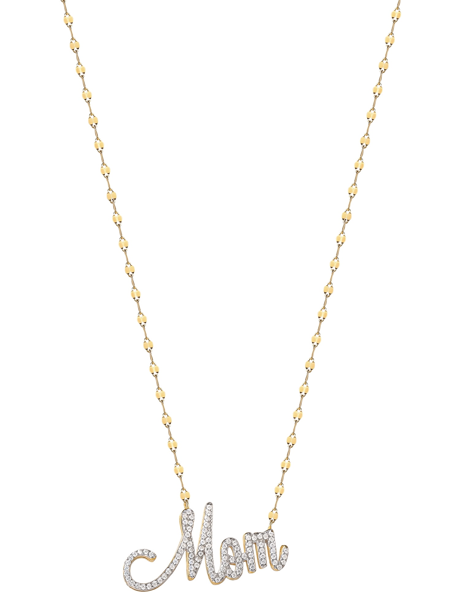 Brilliance Women’s Gold and Rhodium Plated Sterling Silver Pave Mom CZ Necklace