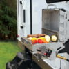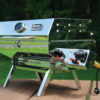 Designed for RV and outdoor use, this high quality lightweight stainless steel barbecue increases flavor without flare-ups. Versatile mounting bracket included for the side of your RV or to use as a stand. Smoker plate is designed to offer the fullest flavor while minimizing grease fires. Quick and easy to assemble. Includes Quick-Connect hose and valve to use the propane supply on an RV or trailer that has a built-in Quick-Connect propane connection.21-1/2″ w x 13-1/4″ d x 8-1/2″ h.