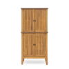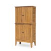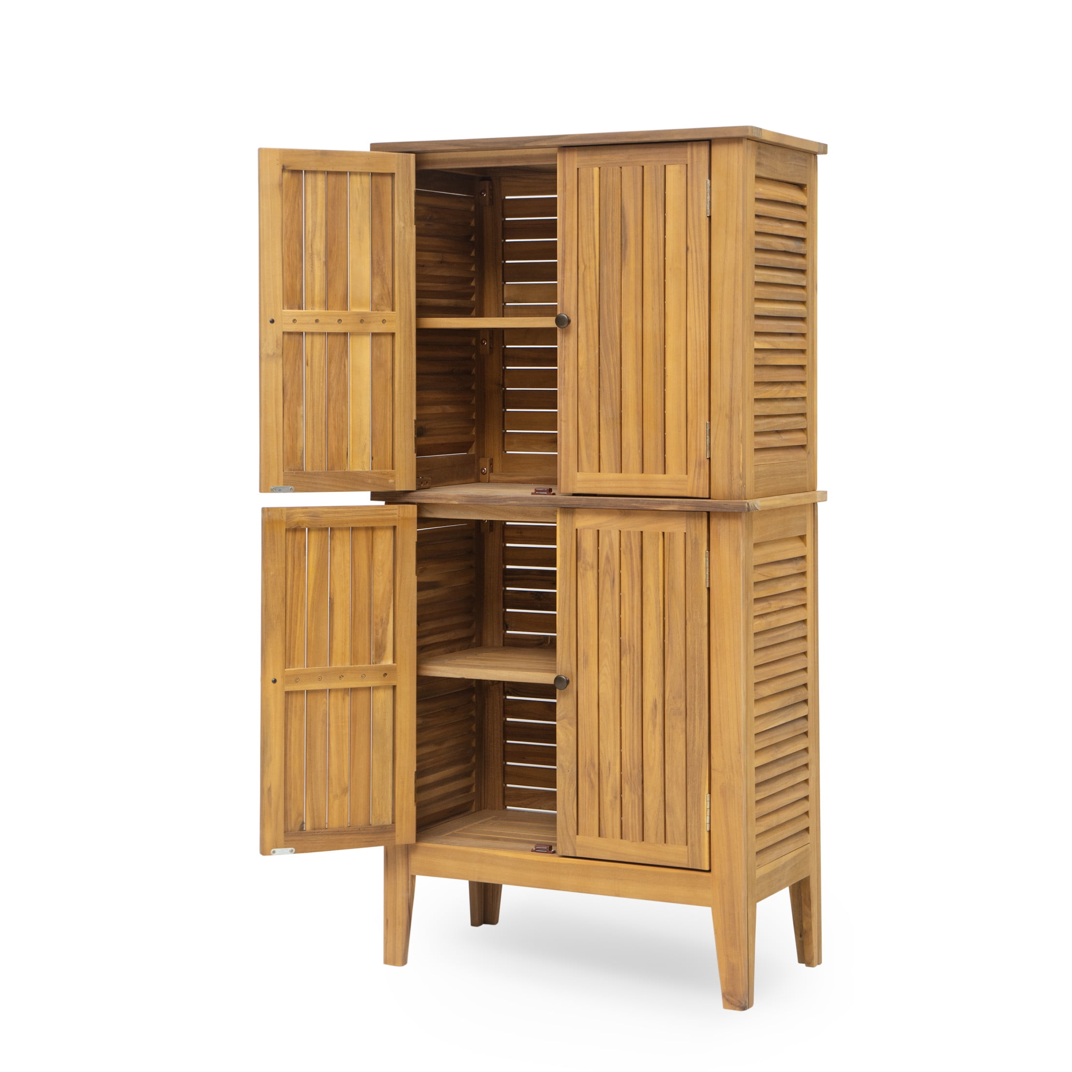 Bring a touch of coastal charm to your home with this Coastal Wood Storage Cabinet, crafted from weather- and water-resistant acacia wood, it withstands outdoor elements. Perfect for patios, kitchens, bathrooms, or entryways, this cabinet offers ample storage with two tiers of double doors, keeping your space organized and clutter-free. The sturdy construction, slender legs, and modern design ensure durability and a light, airy look, ideal for seaside or contemporary décors. Easy to assemble and maintain, this cabinet adds warmth and functionality to your living space. Dimensions: 30.00” L x 16.14” W x 61.80” H. Upgrade your storage with style today!