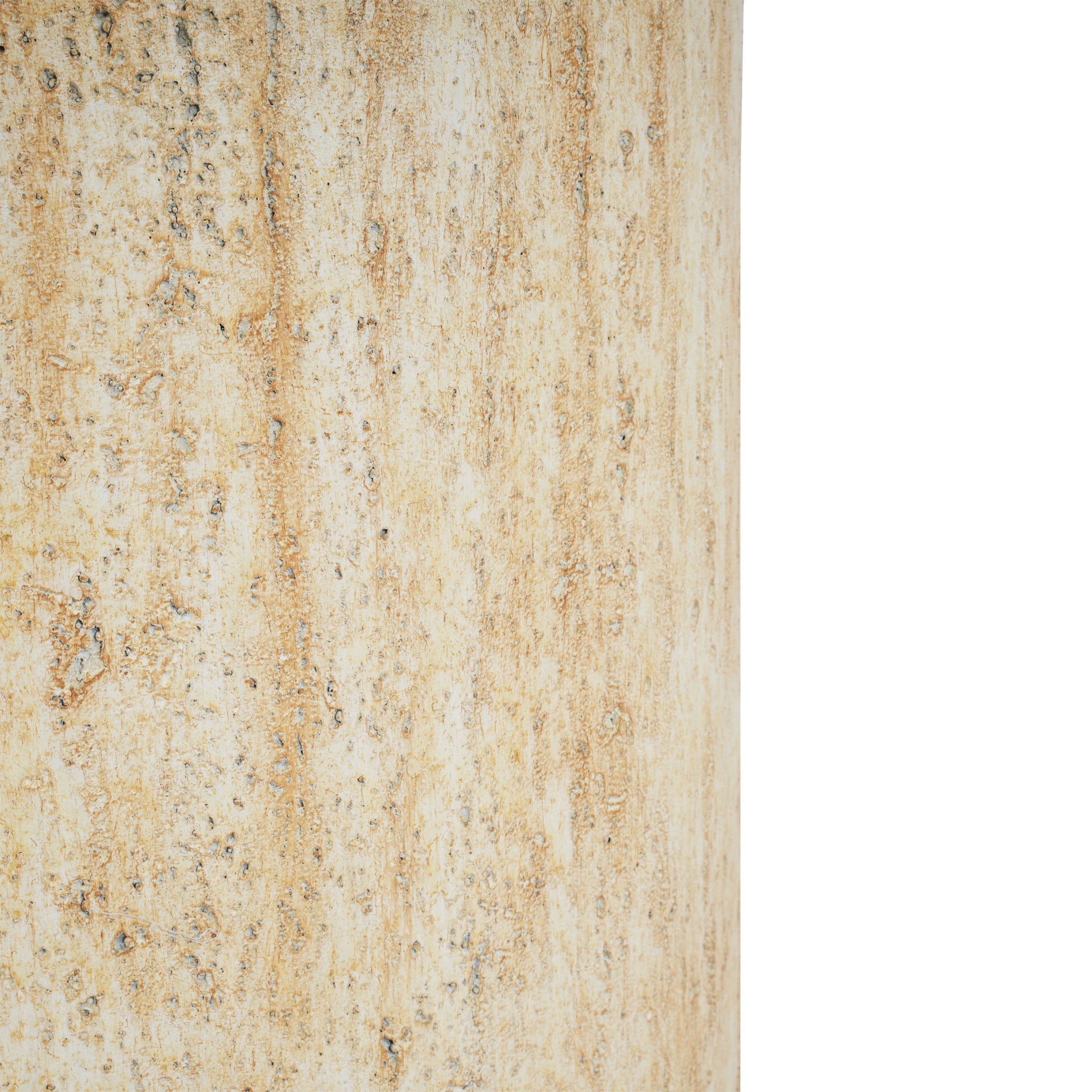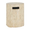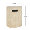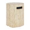 Add a touch of style and functionality to your outdoor space with this round concrete side table, crafted from lightweight yet durable concrete for lasting strength. It blends effortlessly with any patio, garden, or balcony decor and features a classic travertine beige finish and textured surface. This versatile piece serves as both a side table and a propane tank cover, ideal for standard 20-lb propane tanks. Its inviting round shape creates a welcoming atmosphere for gatherings. Ready to use right out of the box, this multi-functional table requires no assembly for your convenience..
