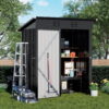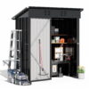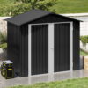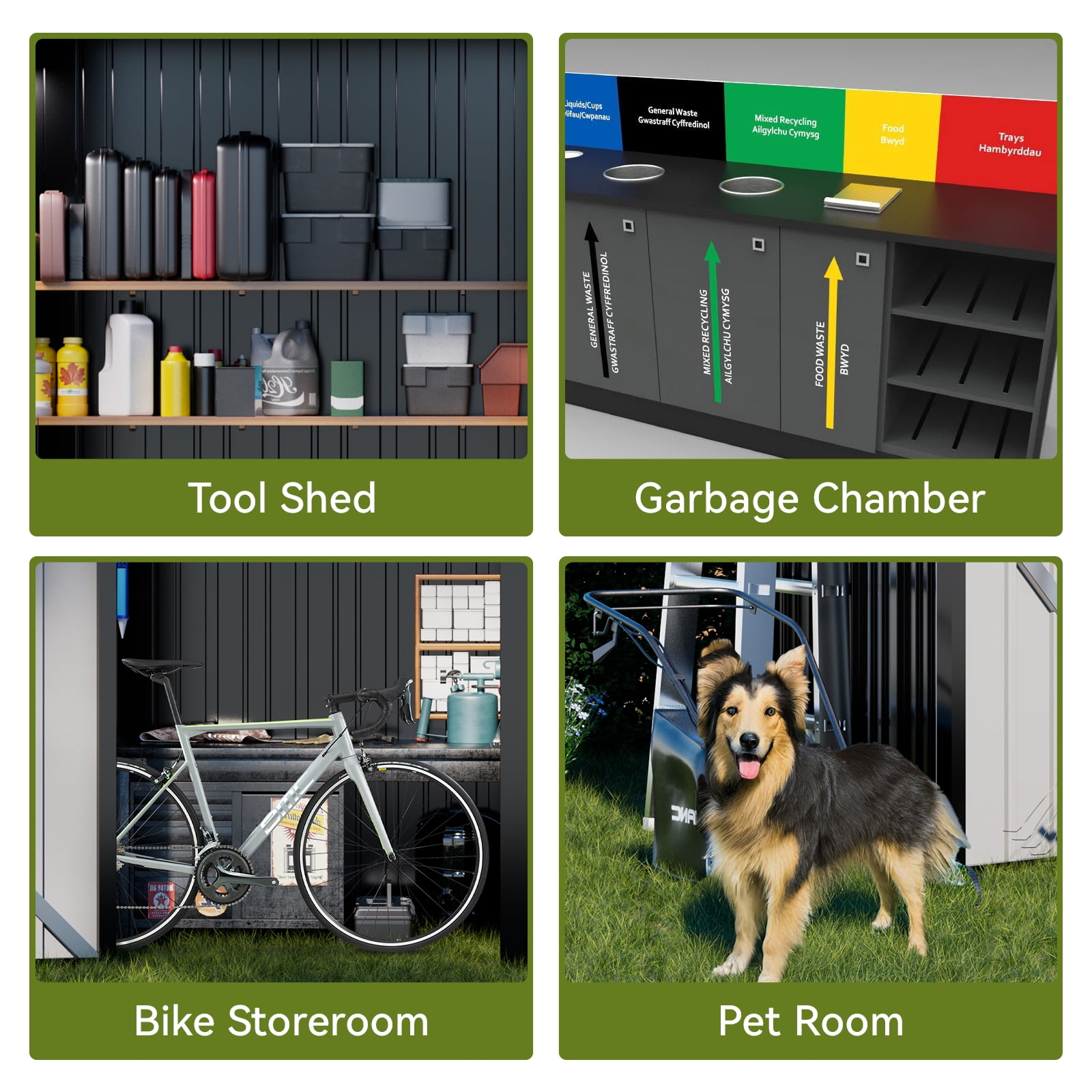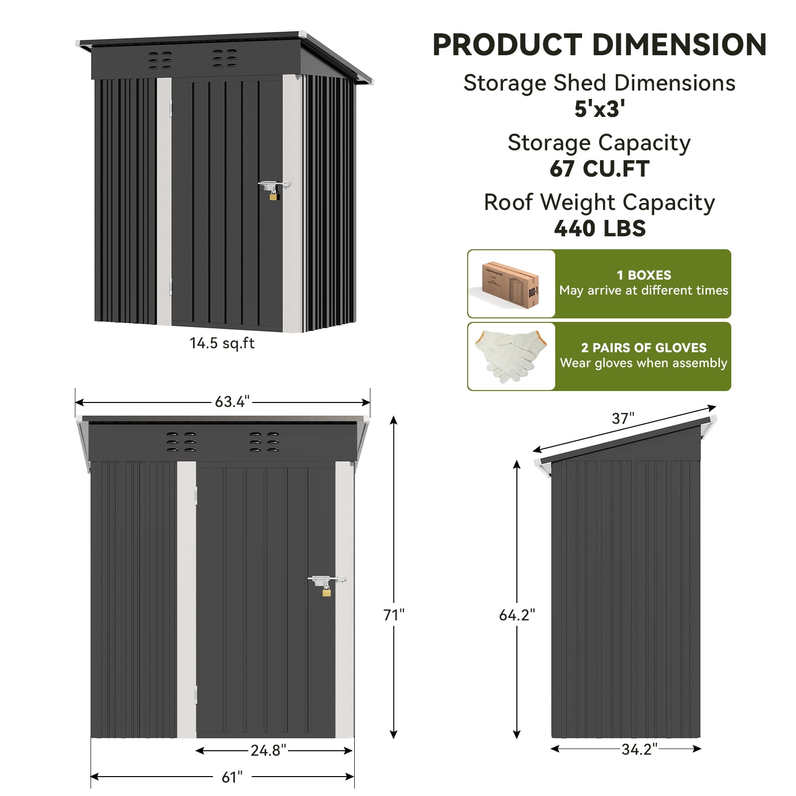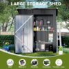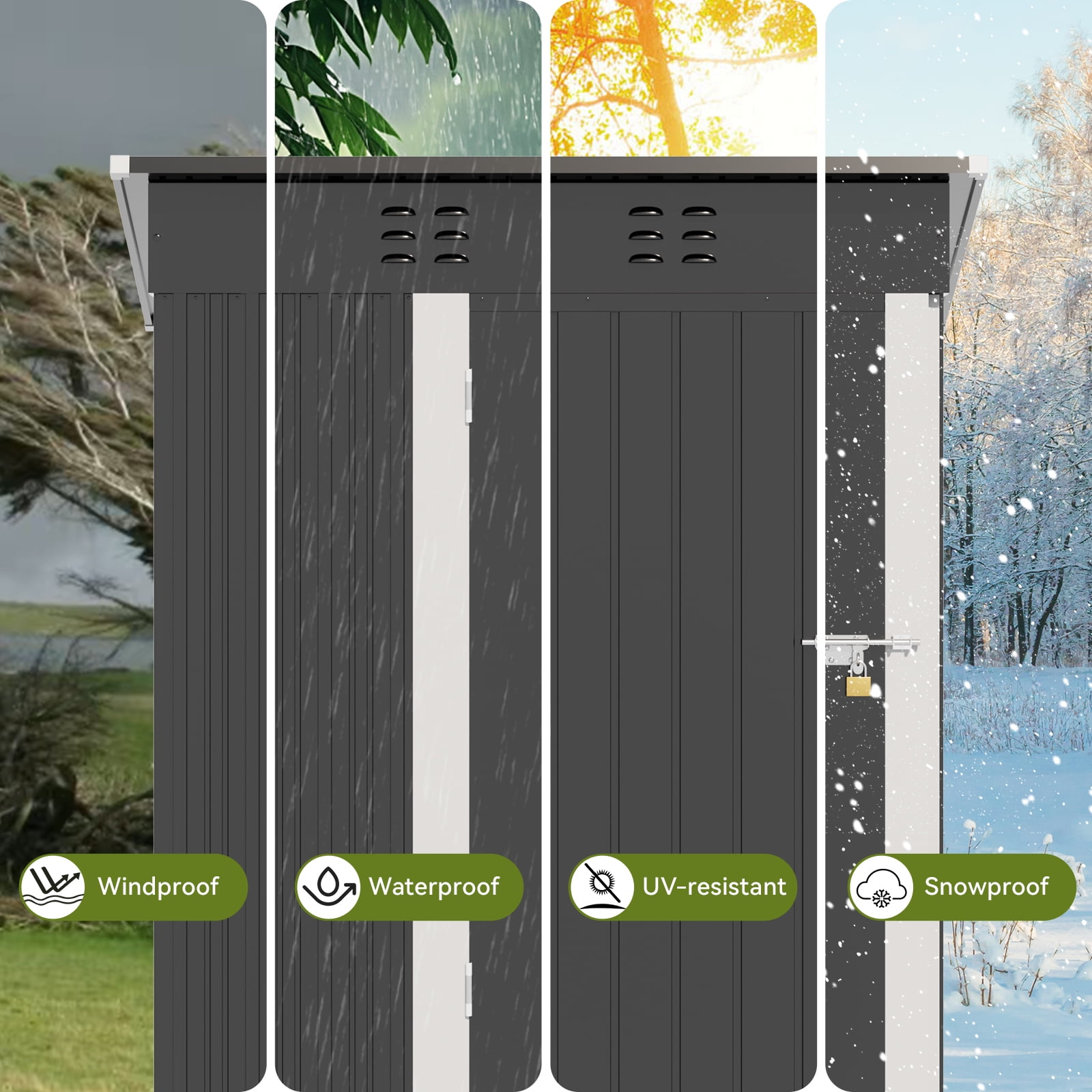 Made of high-quality galvanized steel and covered with a powder-coated finish ensures that it can withstand harsh weather conditions.The lockable door provides security,keeps your tools away from being stolen.Two Top Vents for Better Airflow,Keeping the Space Cool and Odor-Free.This COMHOMA metal garden shed can store your snow blowers,shovels,outdoor chairs,bicycles,You can also buy some storage racks to hang on your shed to design your storage space.