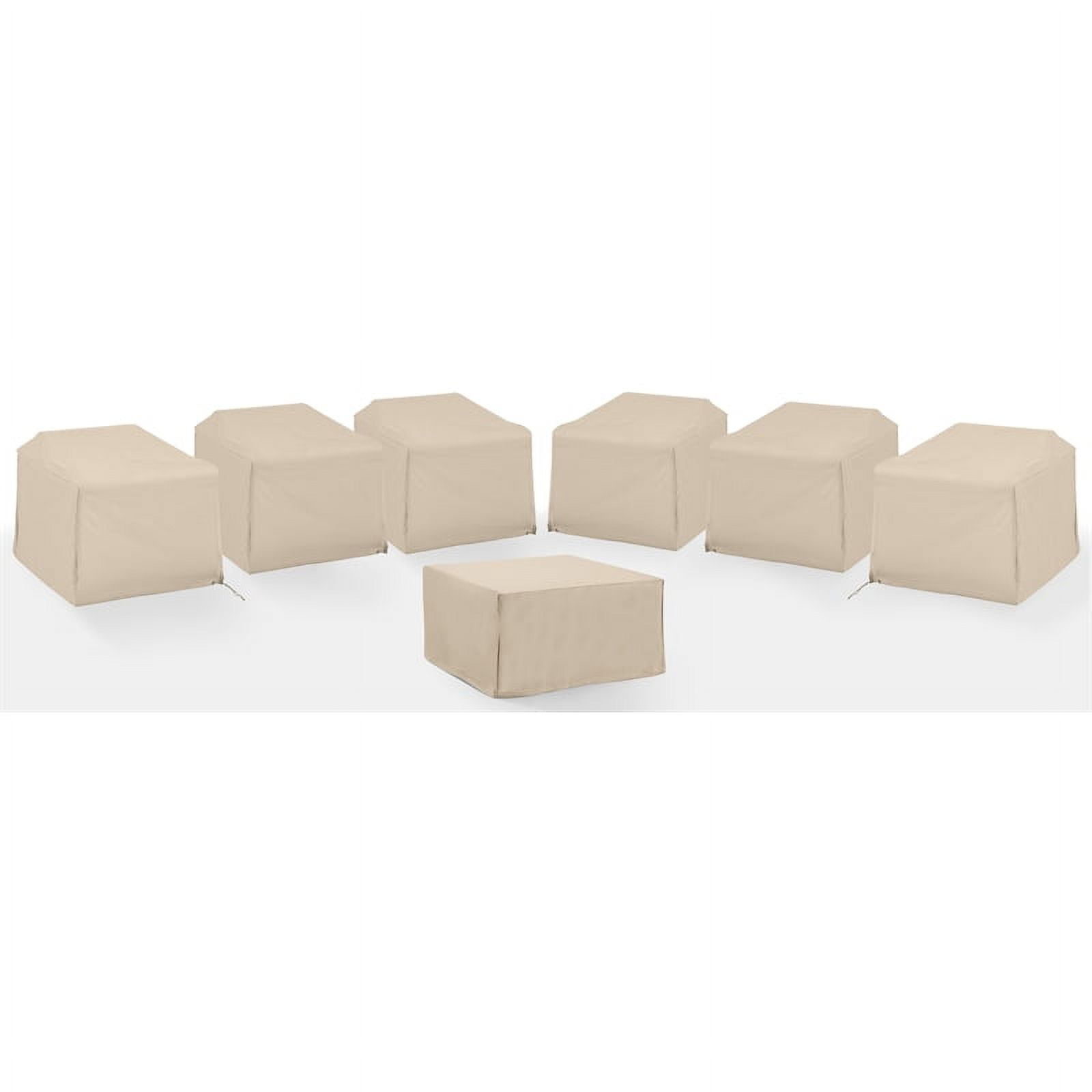 Give shelter to your patio furniture with this 7pc universal protective outdoor cover set. Sewn from heavy gauge, reinforced vinyl, these outdoor furniture covers are ready to face the elements, be they snow, dirt, sap, rain, and more. Tighten the sewn-in drawstrings and maintain your patio sectional set’s beauty no matter the season. Designed to fit a variety of patio chairs, outdoor rocking chairs, and square outdoor ottomans.