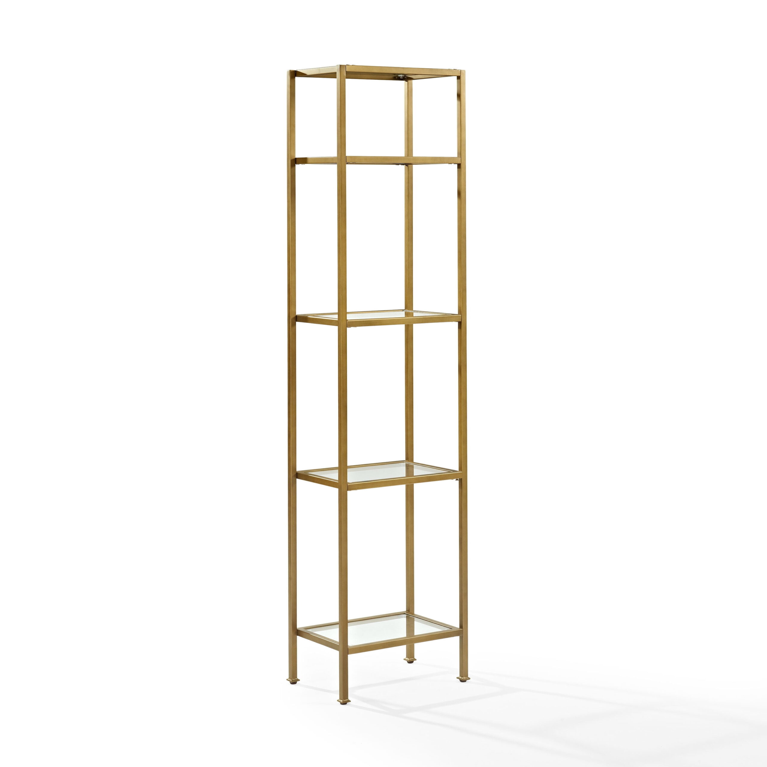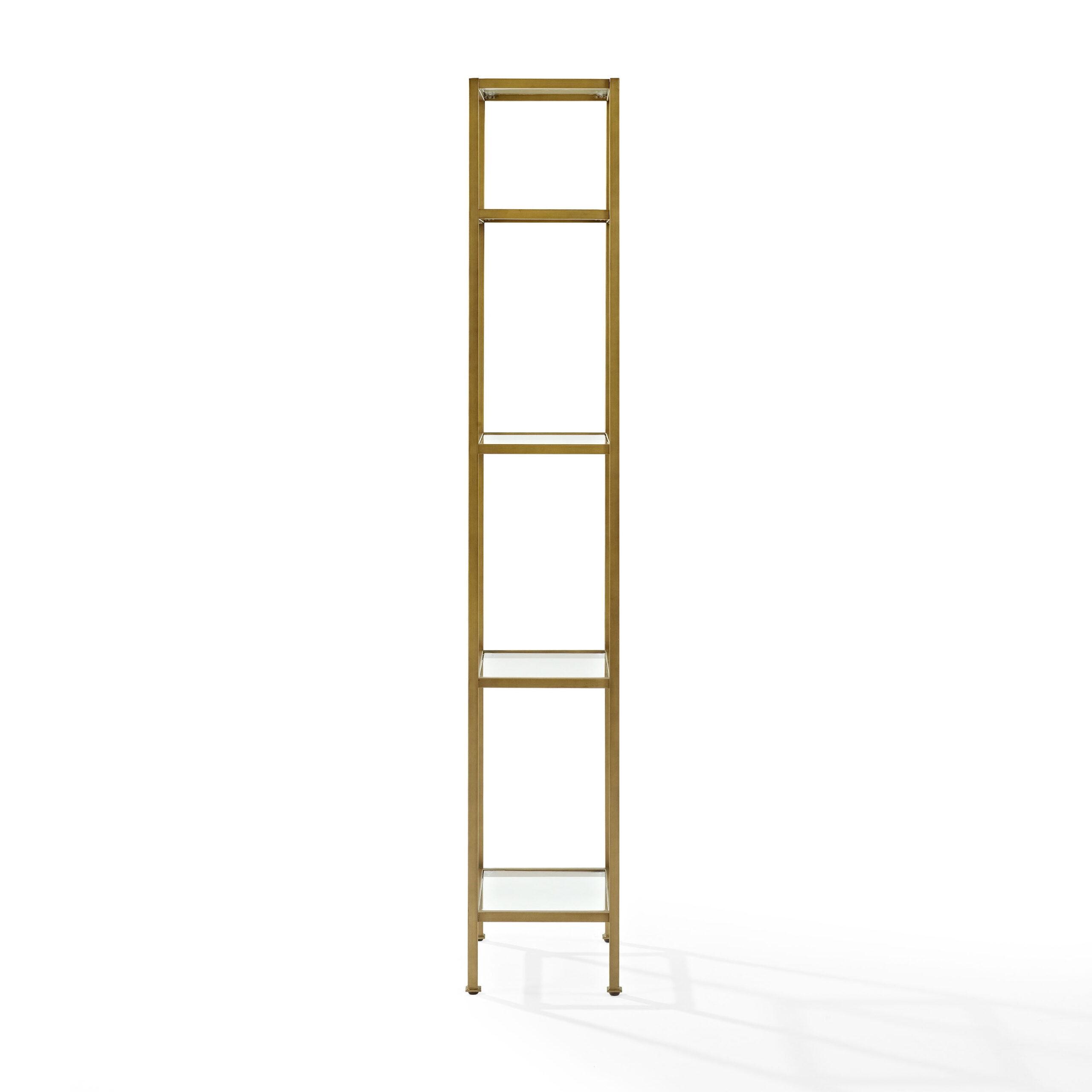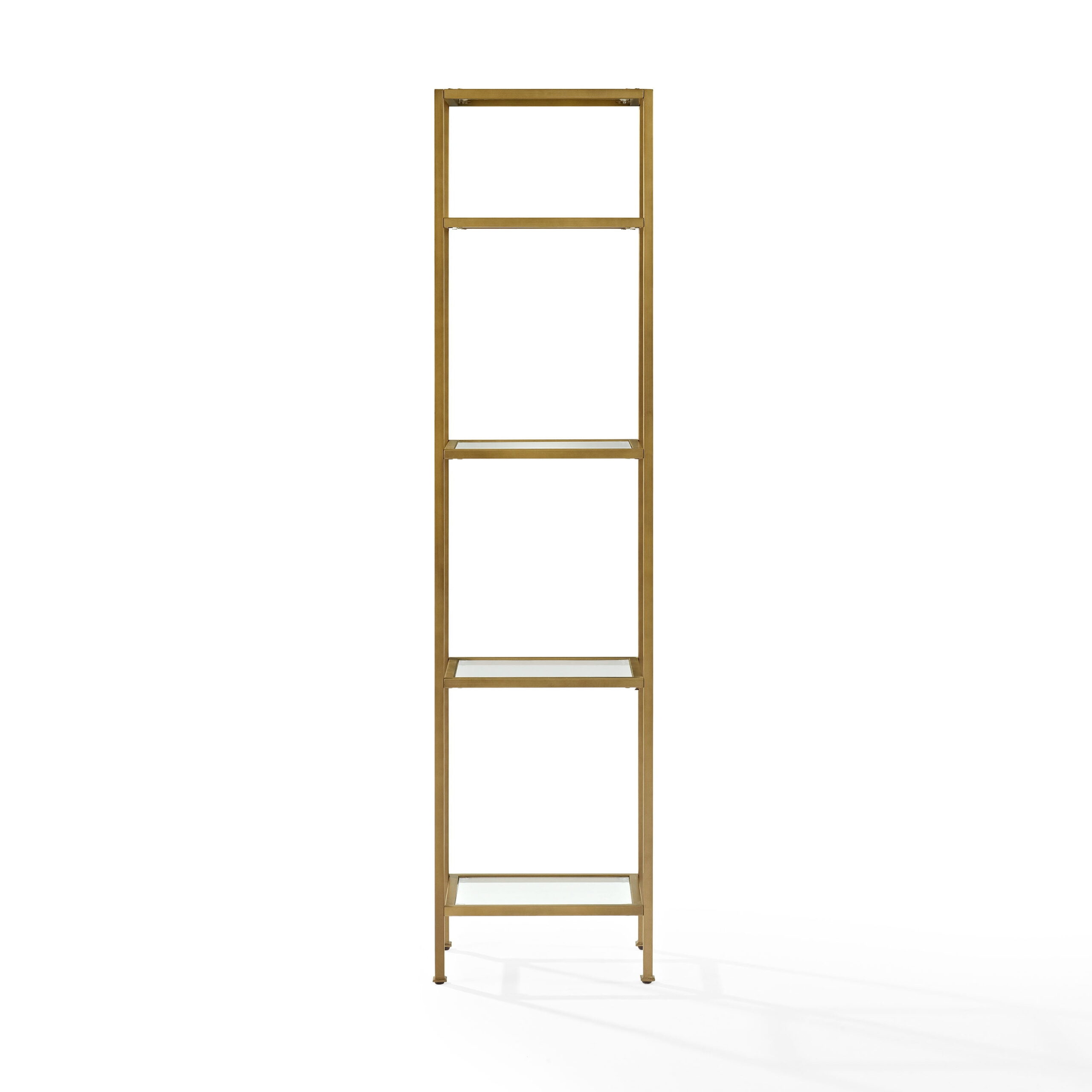 Stylish and modern, the Aimee Narrow Etagere Bookcase is an eye-catching addition to any home. With a sturdy yet sleek steel frame, the bookcase can be paired with a variety of décor. The open, tempered glass shelves of the modern bookshelf are perfect for display and organization without overwhelming the room.